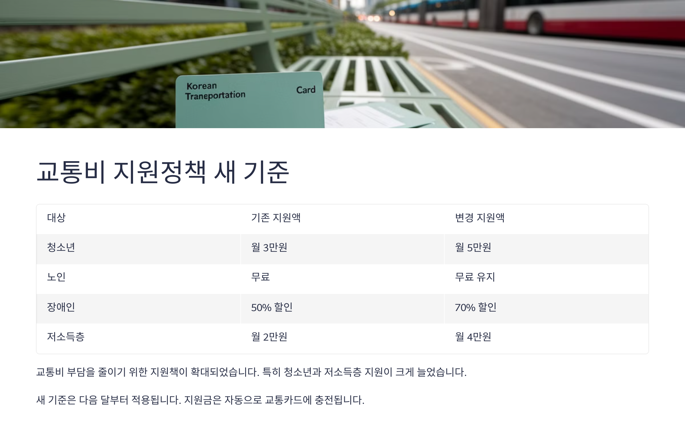 🚌 교통비 지원정책 새 기준