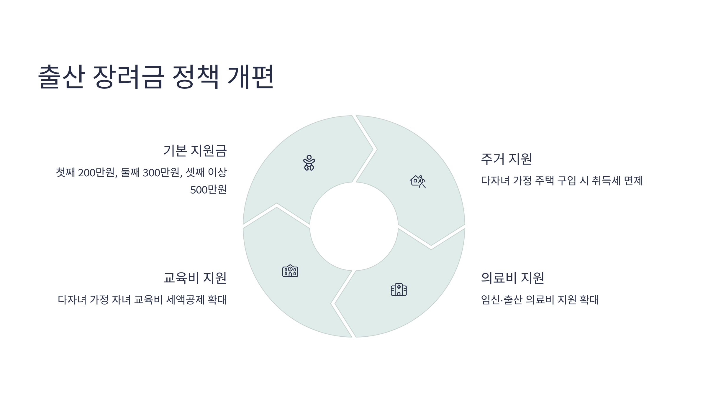| 첫째아 지원금 | 없음 또는 50만 원 | 100만 원 이상 | 기본 지급 도입 |