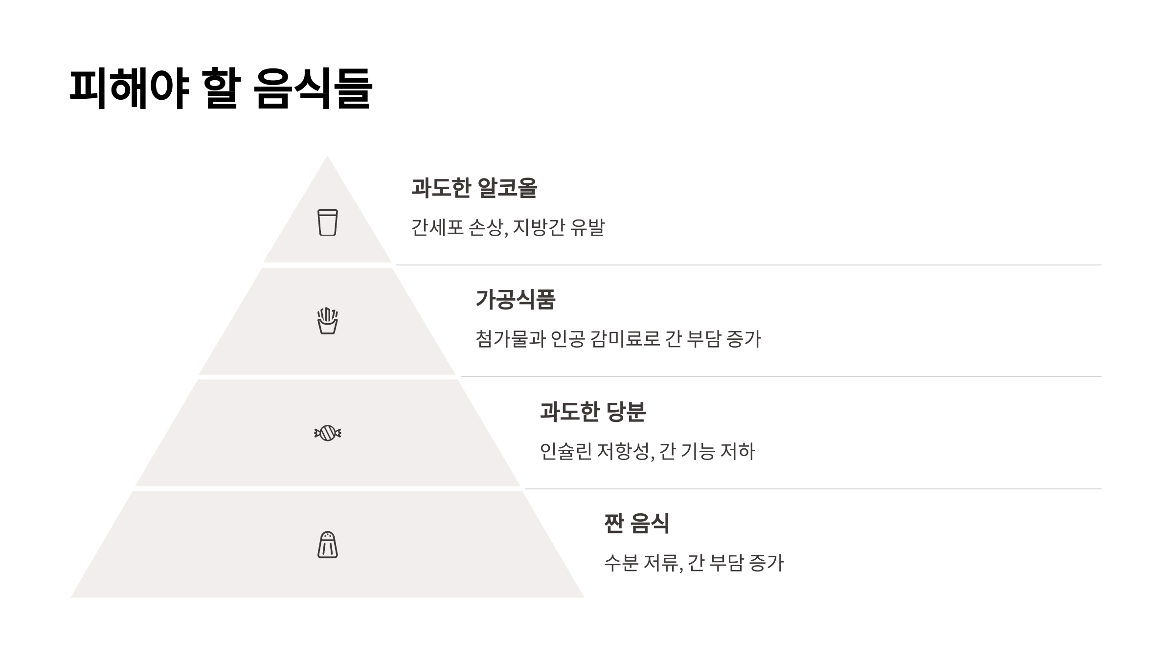 간 건강을 지키기 위해 꼭 먹어야 할 음식만큼, 피해야 할 음식들도 알아두는 게 정말 중요해요. 아무리 건강한 식품을 챙겨 먹더라도 간에 나쁜 음식들을 자주 먹으면 효과가 반감되거든요.
