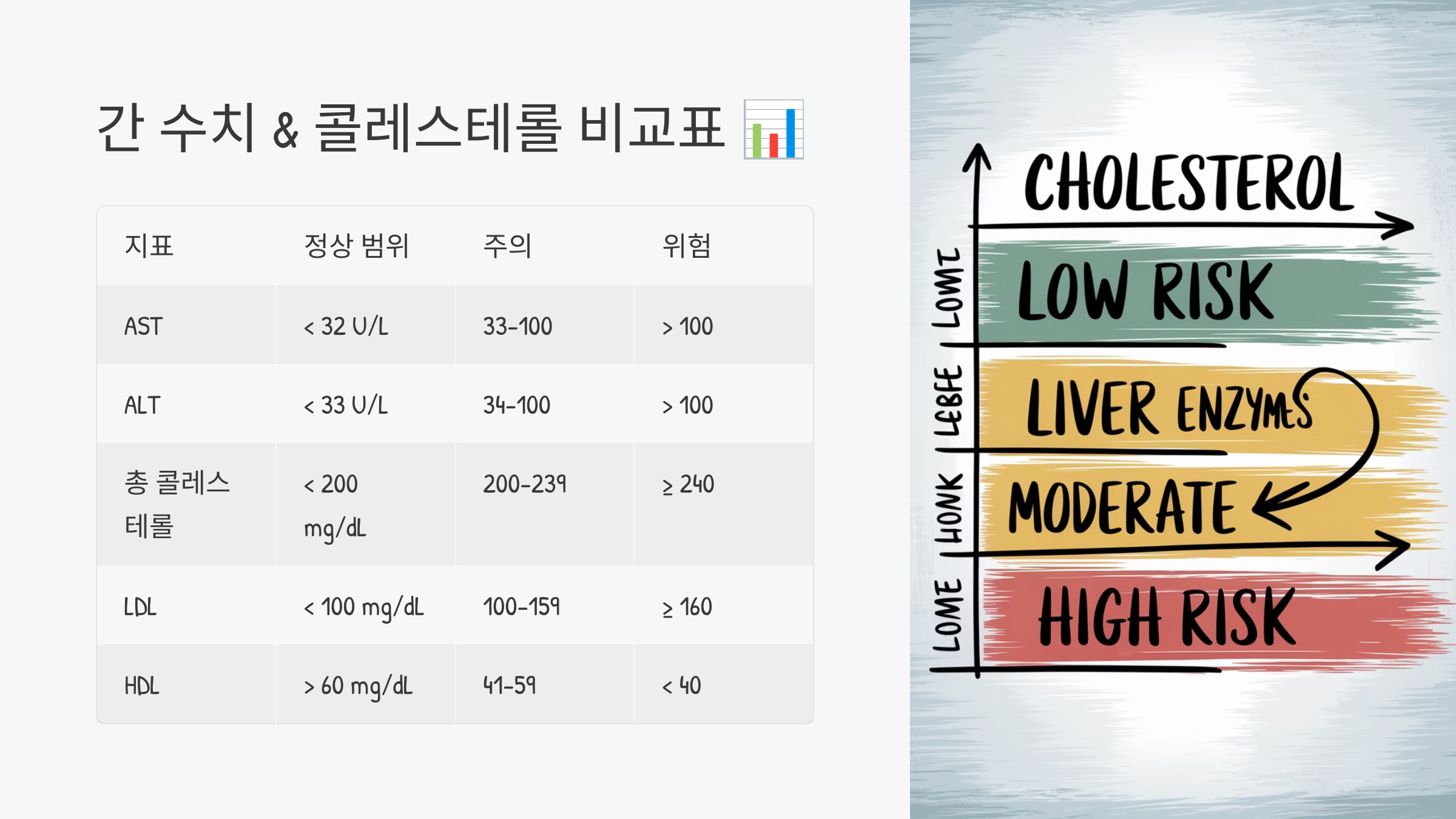 간 수치 & 콜레스테롤 비교표 📊