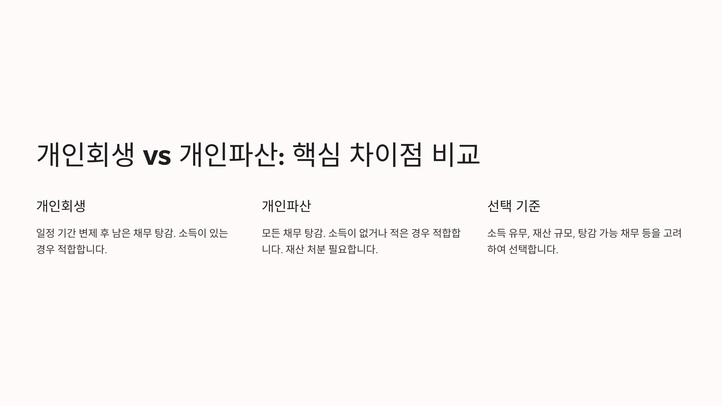 📌 어떤 상황에서 개인회생 vs. 개인파산?