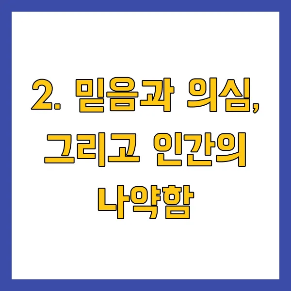 <곡성> 은 믿음과 의심 이라는 인간의 근원적인 문제를 다룹니다. 딸 효진의 이상 행동을 목격한 종구는 외지인을 의심하지만, 동시에 무명의 말에도 혼란스러워합니다. 일광의 등장은 종구의 믿음을 더욱 흔들어 놓죠. <곡성>은 선과 악의 경계가 모호한 상황 속에서, 누구를 믿고 누구를 의심해야 하는지에 대한 질문을 던집니다. 관객들은 종구의 갈등에 공감하며, 스스로의 믿음에 대해 되돌아보게 됩니다.