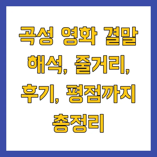 <곡성> 은 탄탄한 스토리, 섬세한 연출, 압도적인 연기력, 그리고 끊임없는 논쟁을 불러일으키는 열린 결말까지! 모든 면에서 완벽에 가까운 영화입니다. 저의 최종 평점은 9.5/10점입니다. <곡성>을 아직 보지 못했다면, 혹은 오랜만에 다시 보고 싶다면, 강력하게 추천합니다! 당신의 믿음을 시험하는, 잊을 수 없는 경험을 선사할 것입니다.