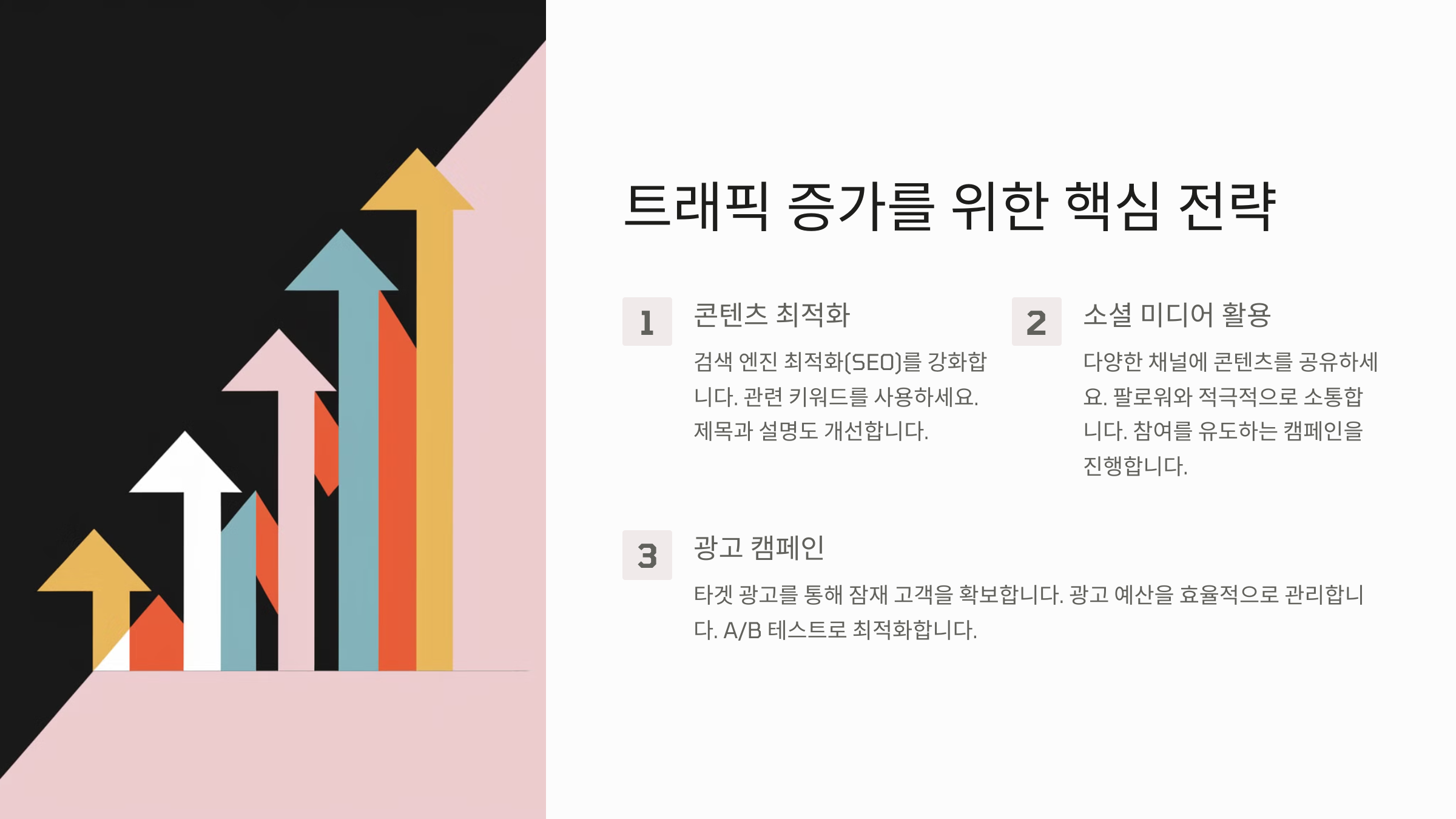 트래픽을 여러 채널에서 유입시키면 특정 플랫폼 변화에 영향을 덜 받으면서 안정적인 수익을 유지할 수 있어요.