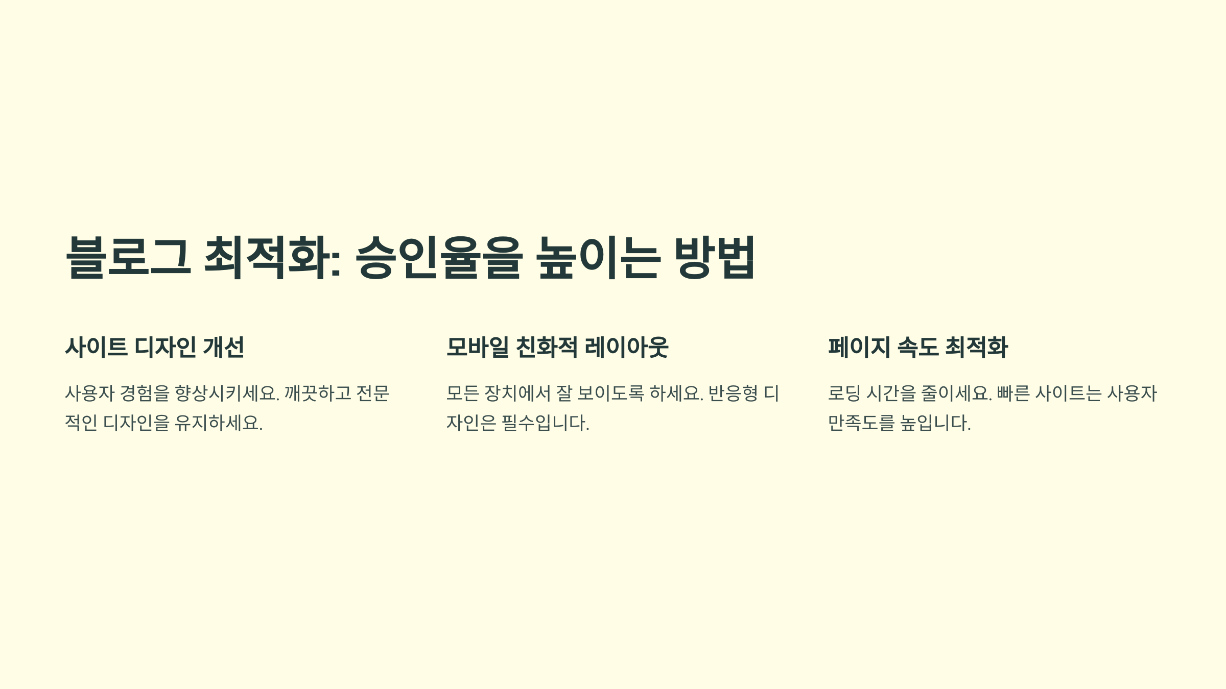 | 내부 링크 활용 | 관련 글을 연결하여 체류 시간 증가 |