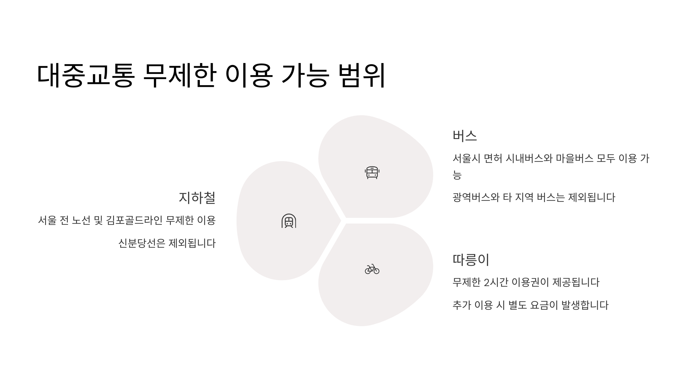 | 이용 범위 | 서울 버스, 지하철, 일부 광역버스 무제한 |