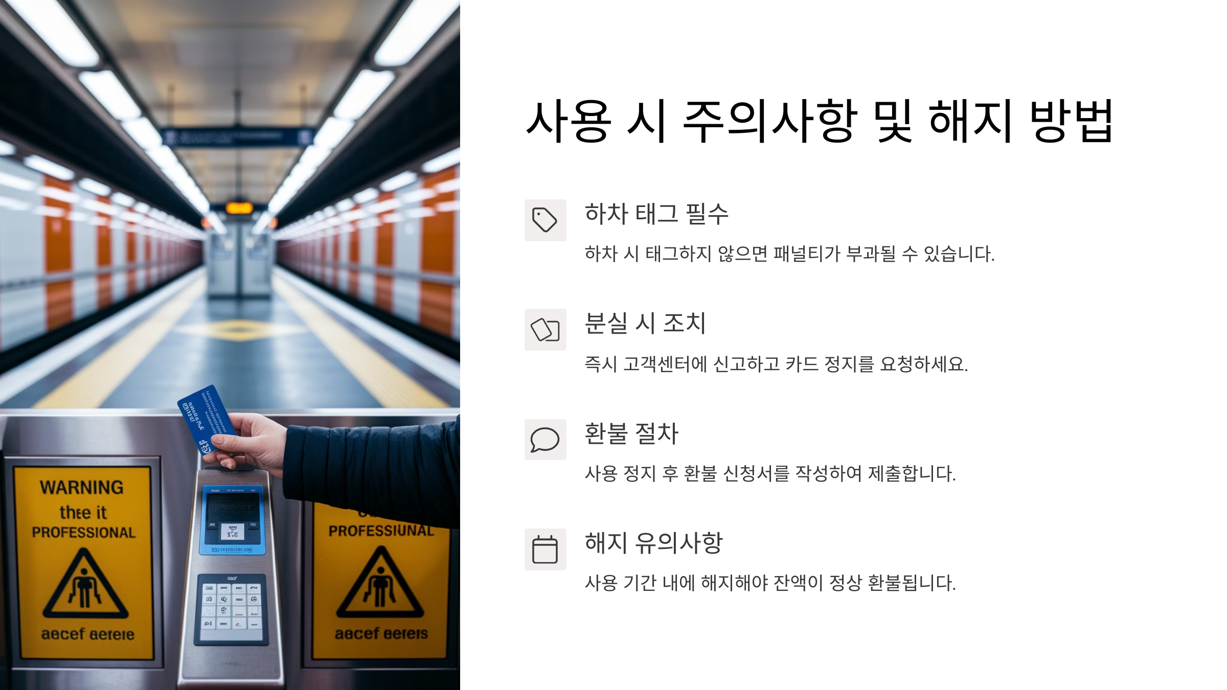 카드 발급 후 첫 사용일부터 30일 동안 유효하며, 자동 충전 기능으로 다음 달도 바로 이용 가능해요. 단, 중간 해지는 환불 불가이니 신중하게 결정해야 해요.