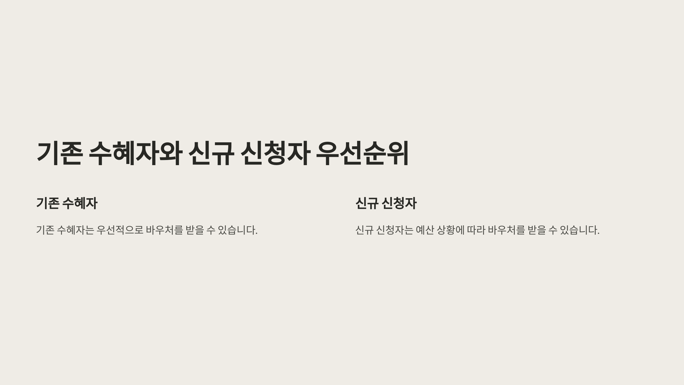 기존 수혜자와 신규 신청자 우선순위 비교