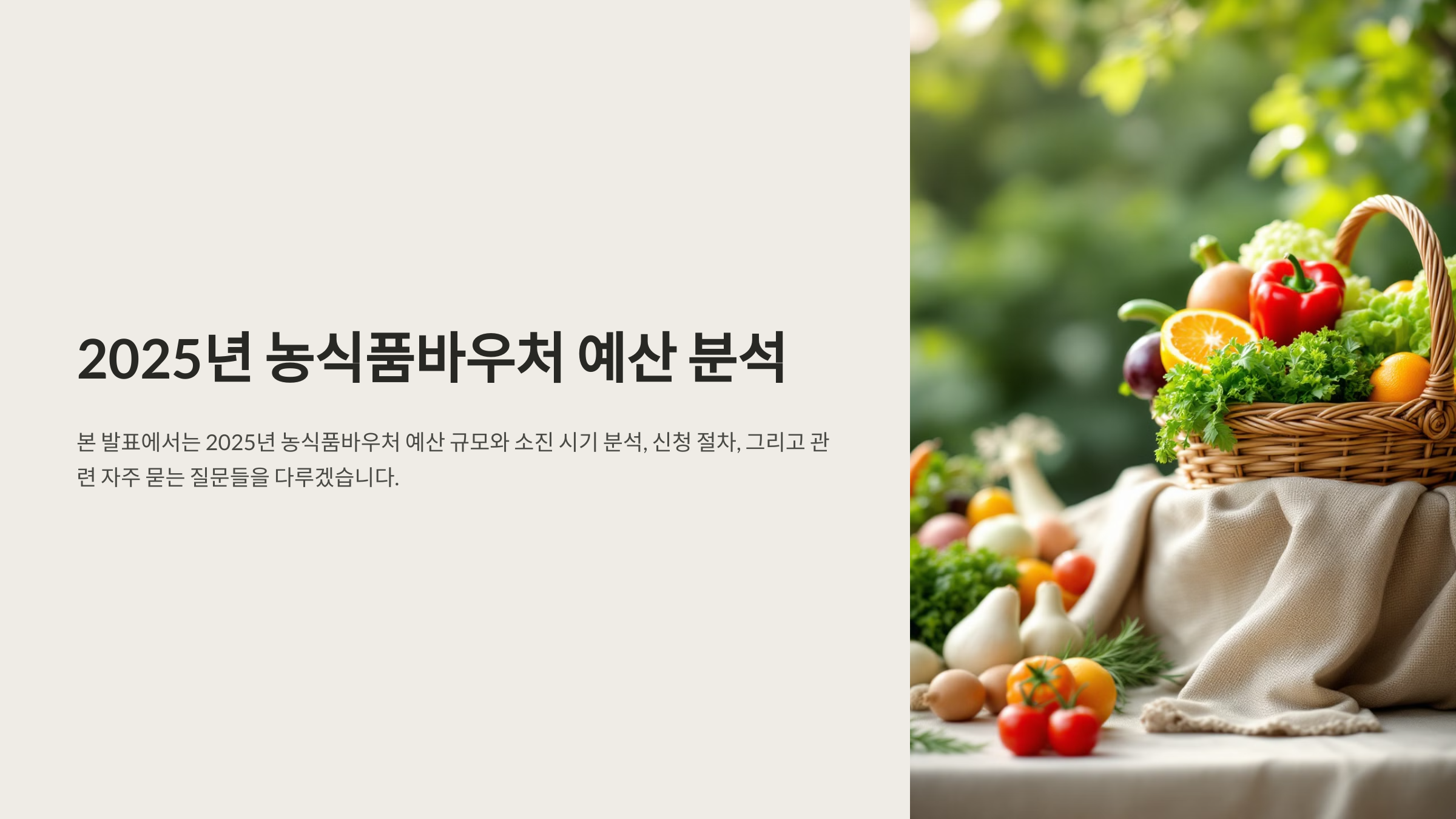 이번 글에서는 2025년 농식품바우처의 예산 규모와 예상 소진 시기를 분석하고, 효과적으로 신청하는 방법을 소개할게요. 또한 바우처를 사용하지 않았을 때의 불이익과 함께 받을 수 있는 추가 지원금 정보도 정리했어요.