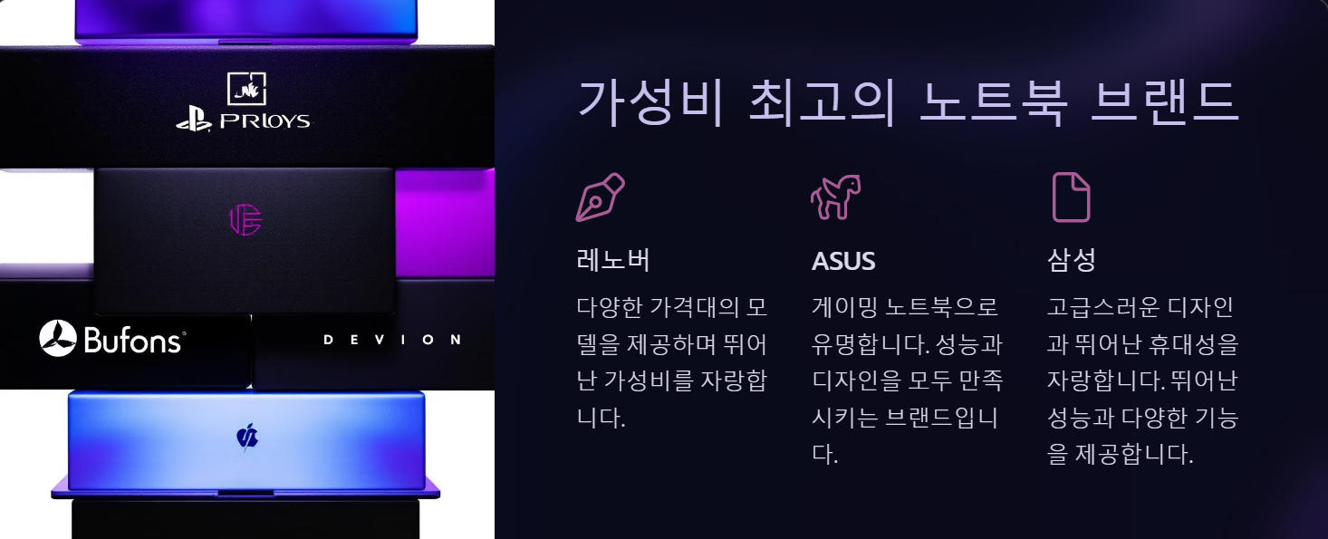 'ASUS'는 젠북 시리즈로 프리미엄 디자인과 성능을 모두 갖춘 모델로 유명해요. 게임용 노트북인 ROG 시리즈는 강력한 그래픽 성능을 자랑하죠.