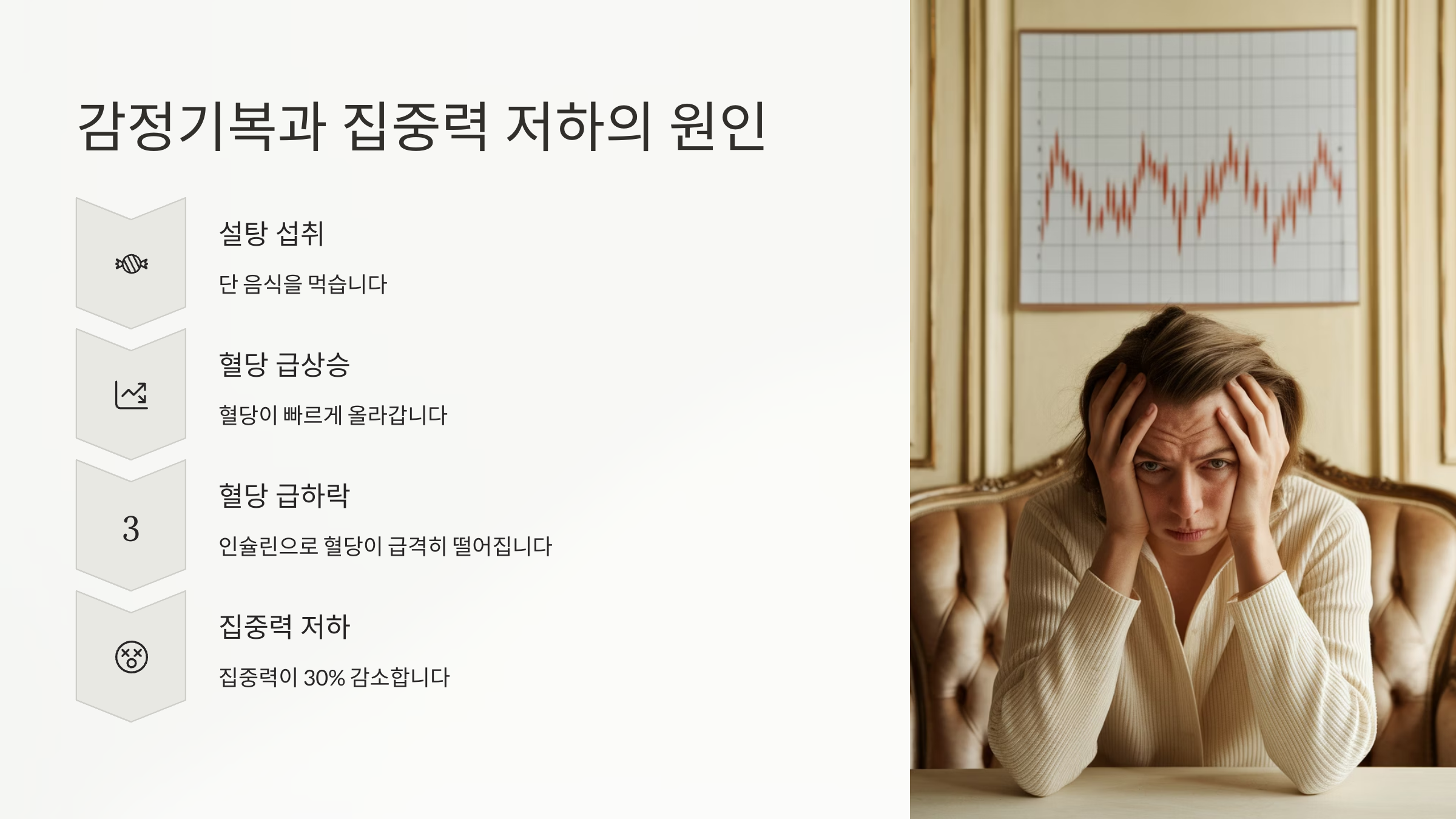 이건 뇌가 안정적인 에너지를 공급받지 못하고 ‘롤러코스터 모드’에 들어가는 현상이에요. 특히 학생이나 직장인들이 단 음식을 과하게 먹으면 집중력 저하, 기억력 감퇴까지 올 수 있어요. 즉, 단 음식은 ‘에너지원’이 아니라 ‘에너지 착각’이에요.