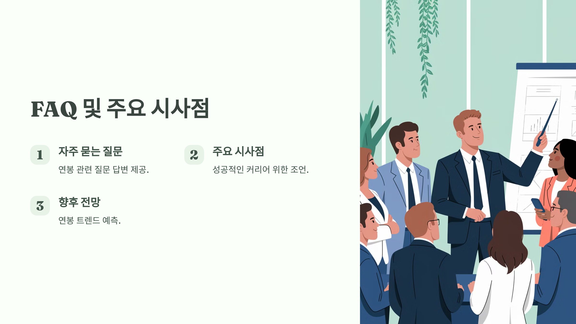 A2. 입사 제안(Offer) 후, 또는 연봉 인상 시즌(보통 연말~연초)에 협상하는 것이 가장 효과적이에요. 입사 전에는 업계 평균 연봉을 조사하고, 기존 직원이라면 성과를 강조하며 협상하는 것이 좋아요.
