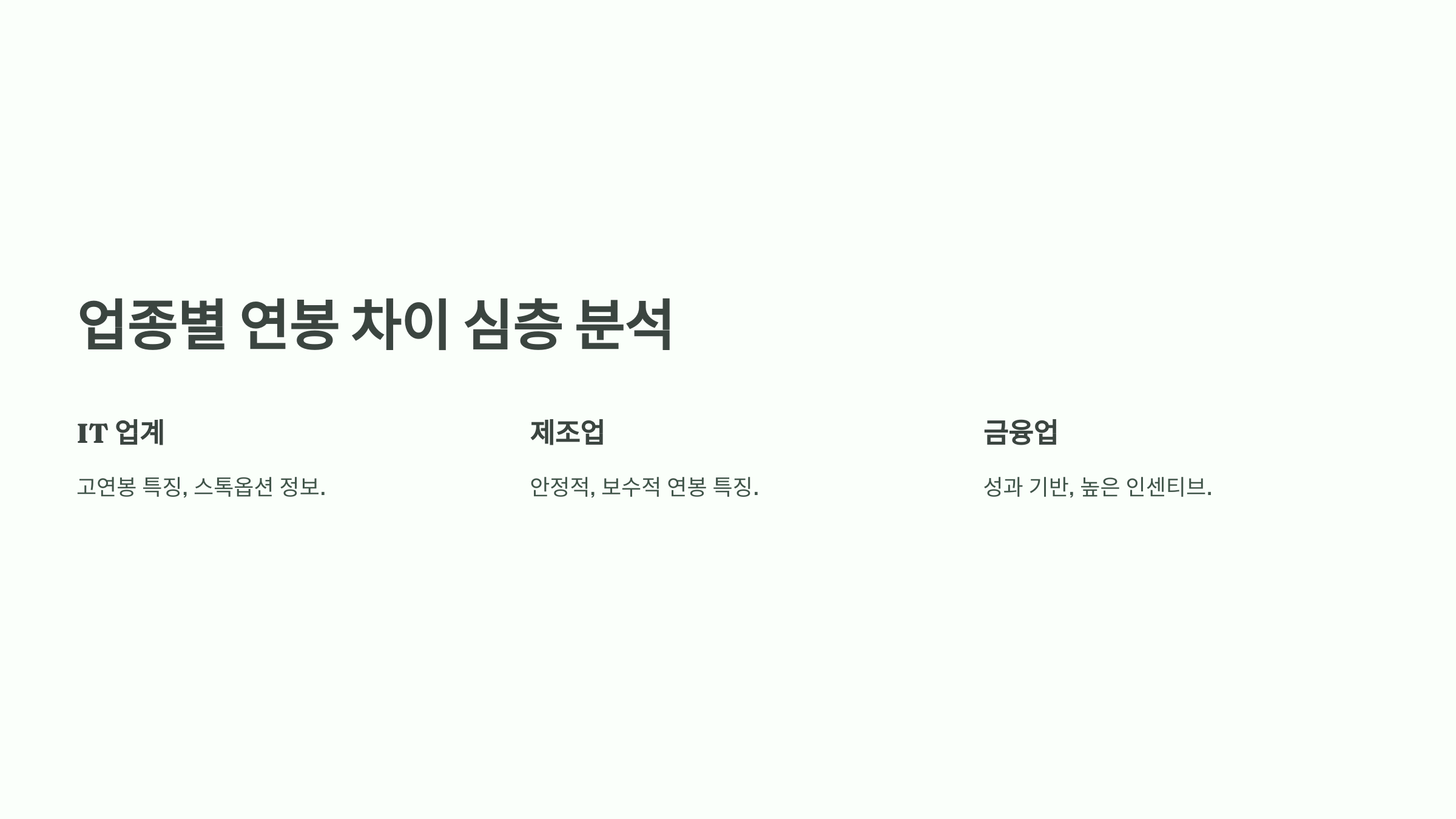 💼 같은 대기업이라도 업종별로 연봉 차이가 크게 나요. 특히 IT·반도체·금융업은 높은 연봉을 제공하는 반면, 제조·서비스업은 상대적으로 낮은 편이에요.