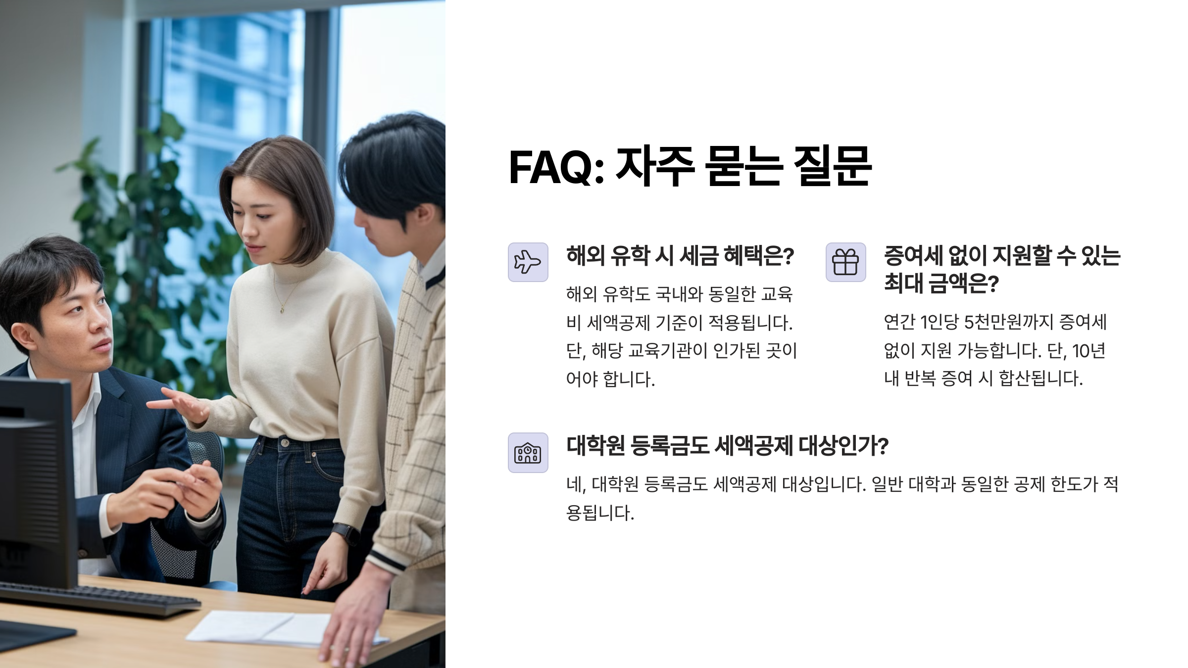 사전에 세무사와 상담해보는 것도 추천해요. 수백만 원짜리 등록금이라면, 세금 측면에서 아주 큰 차이를 만들 수 있어요.