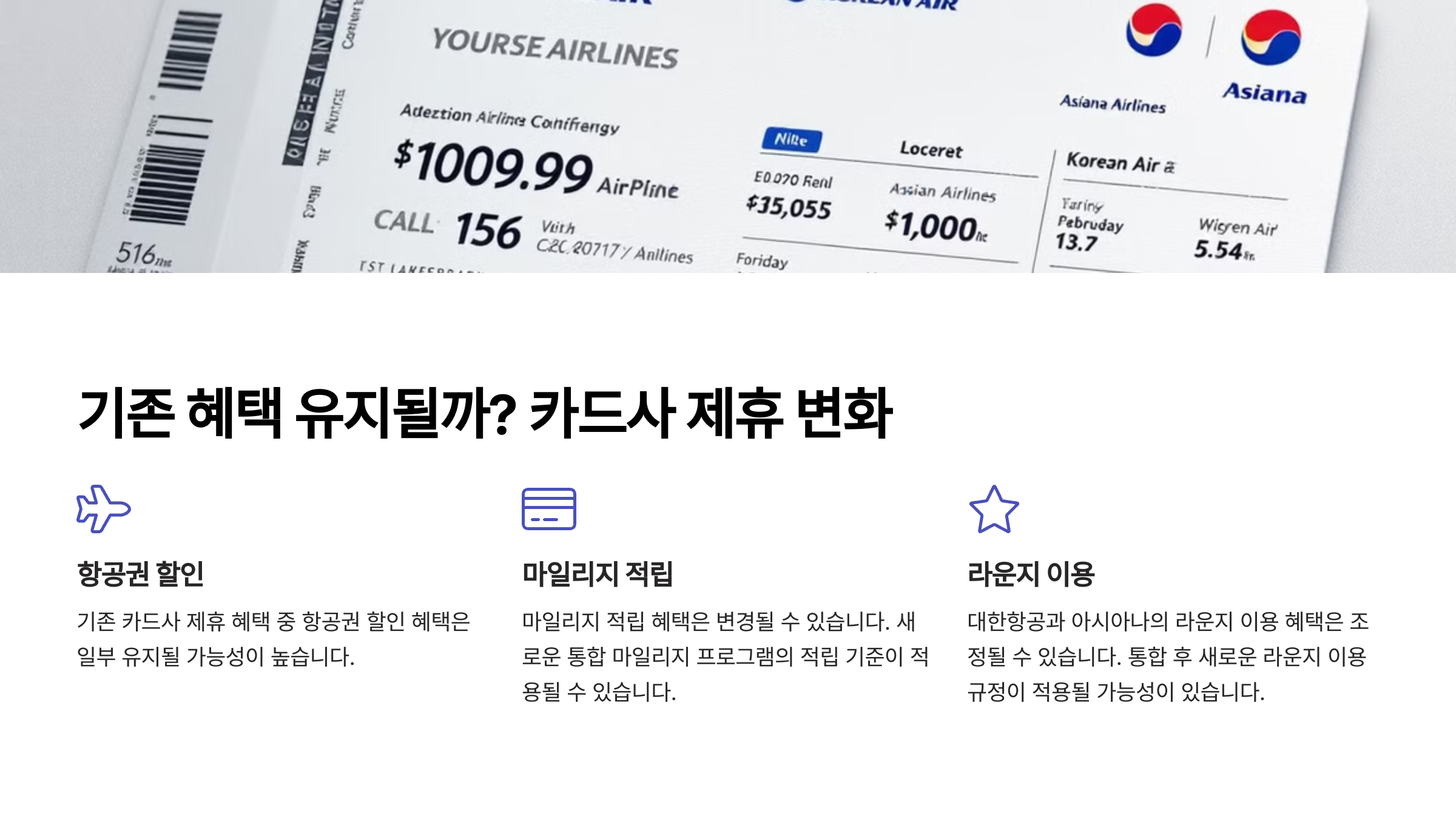 기존 아시아나 제휴 카드 사용자라면, 앞으로 마일리지 적립이 어떻게 바뀔지 주의 깊게 살펴봐야 해요. 만약 현재 사용 중인 카드의 적립 혜택이 축소된다면, 대한항공 제휴 카드로 전환하는 것도 고려해볼 만한 선택지가 될 수 있어요.