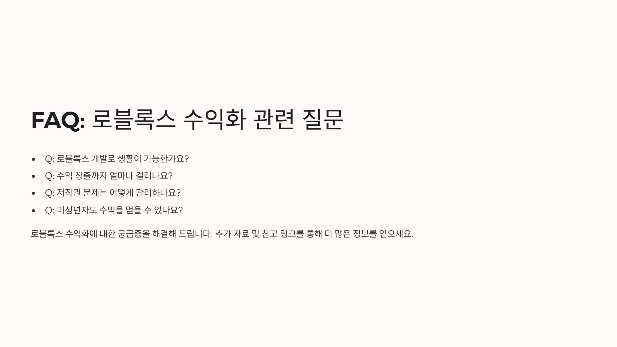 FAQ: 로블록스 수익화 관련 질문 ❓