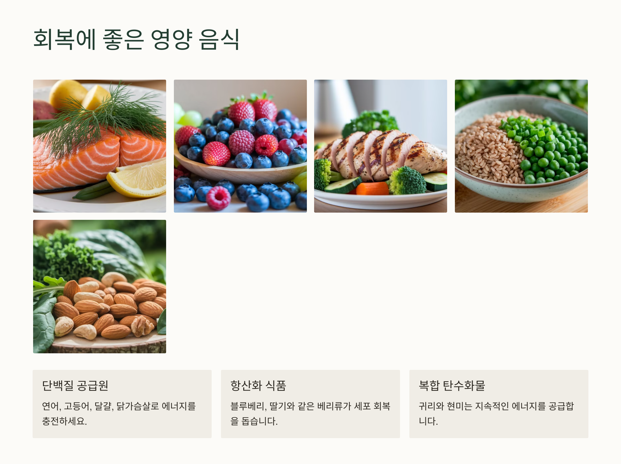 음식은 피로 회복의 첫걸음이에요! 잘 먹는 것만으로도 피로는 훨씬 나아질 수 있어요. 특히 에너지 대사를 도와주는 비타민B군, 항산화 성분이 풍부한 채소, 단백질이 풍부한 식품들이 핵심이에요.