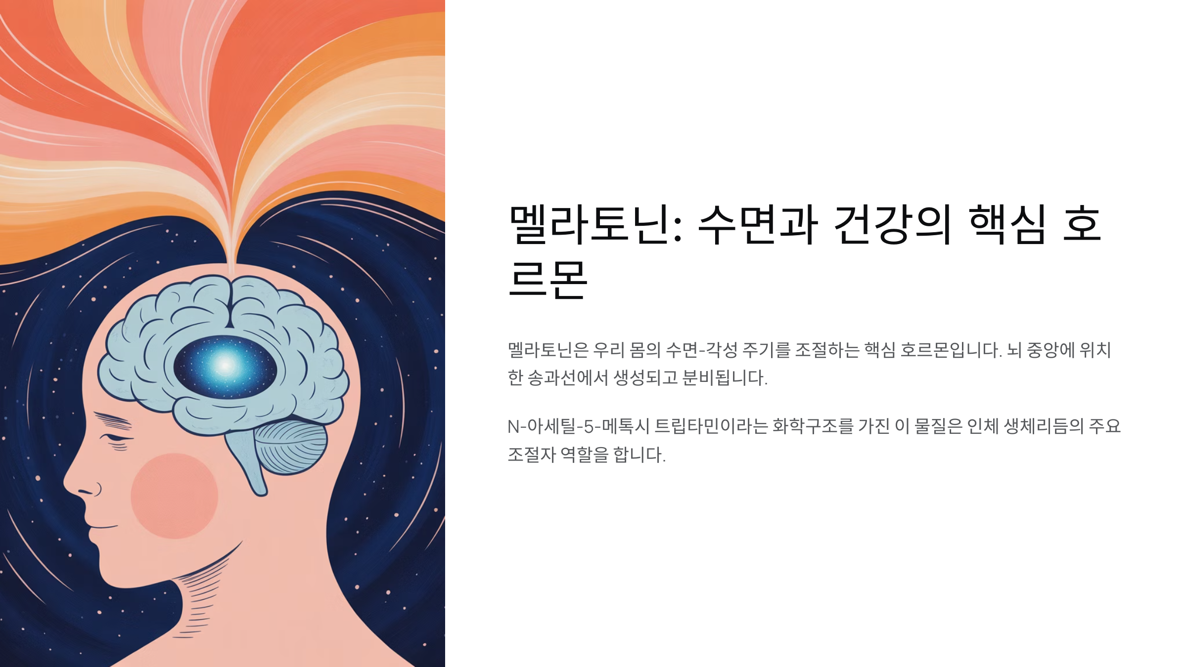 잠이 안 오는 밤, 혹시 멜라토닌이라는 단어를 들어본 적 있나요? 멜라토닌은 ‘수면 호르몬’으로 불리며, 우리가 자연스럽게 잠에 빠지도록 돕는 아주 중요한 생체 물질이에요. 하지만 현대 사회에서는 이 멜라토닌의 분비가 방해받는 일이 많아지면서 불면을 호소하는 사람이 점점 늘어나고 있어요.