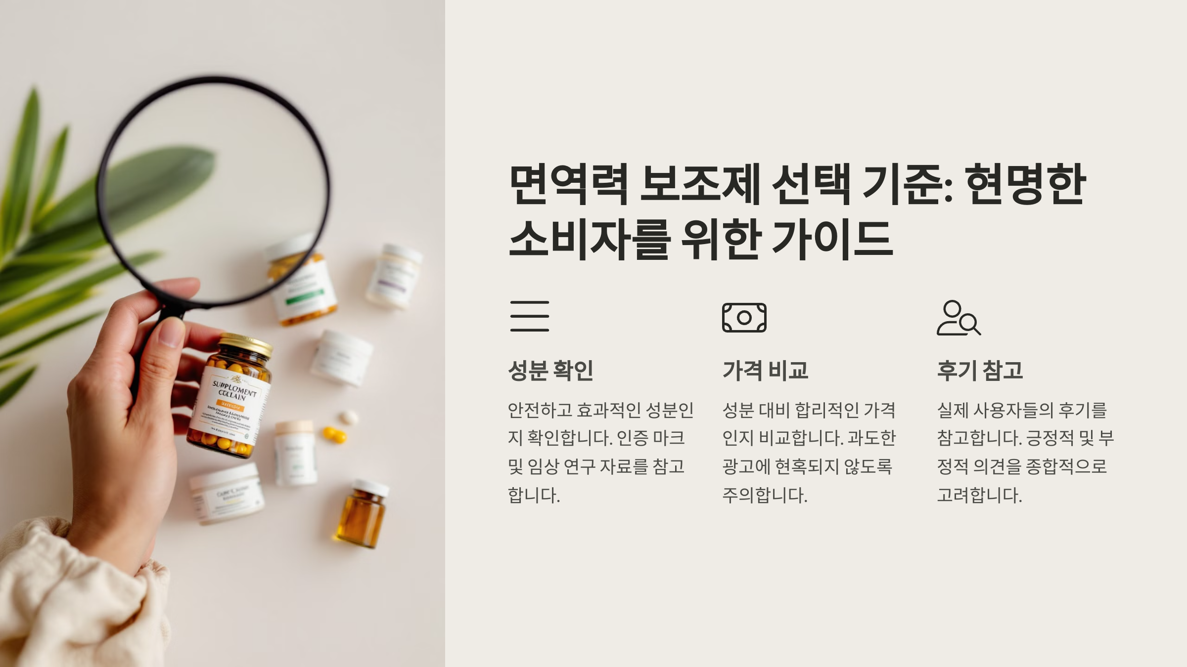 건강보조제를 선택할 때는 단순히 광고를 믿기보다는 몇 가지 중요한 기준을 고려해야 해요. 면역력을 높이기 위해 섭취하는 만큼 효과적인 제품을 고르는 것이 중요하니까요.