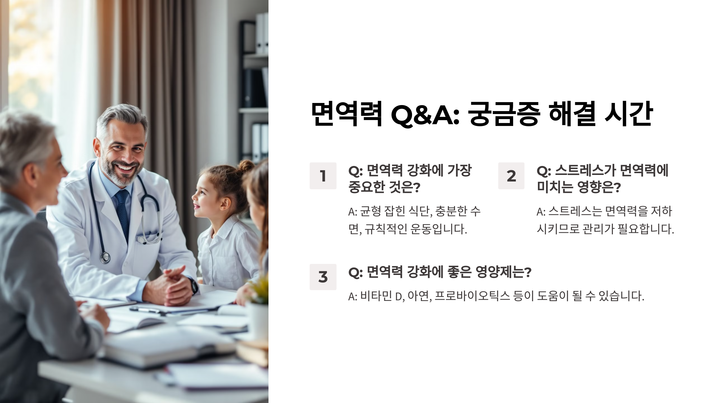 또한, 스트레스와 수면 부족도 면역력을 급격히 떨어뜨리는 원인이에요. 꾸준한 생활 습관 개선으로 면역력을 높이는 것이 중요해요.