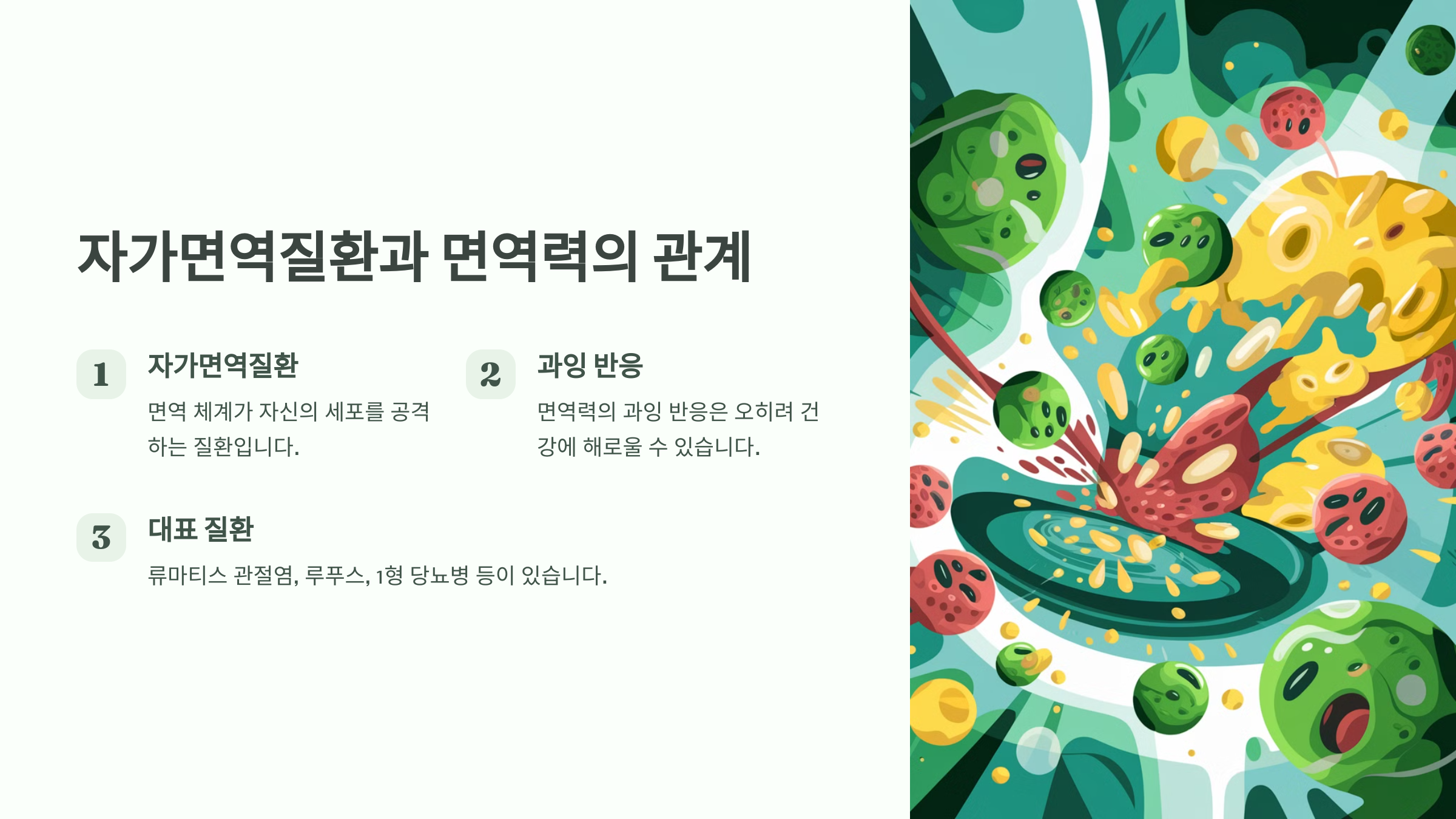 면역력이 낮으면 감염성 질환뿐만 아니라 자가면역질환에도 걸리기 쉬워요. 자가면역질환은 면역체계가 외부에서 침입한 병원균이 아니라 자신의 몸을 공격하는 질환을 말해요.