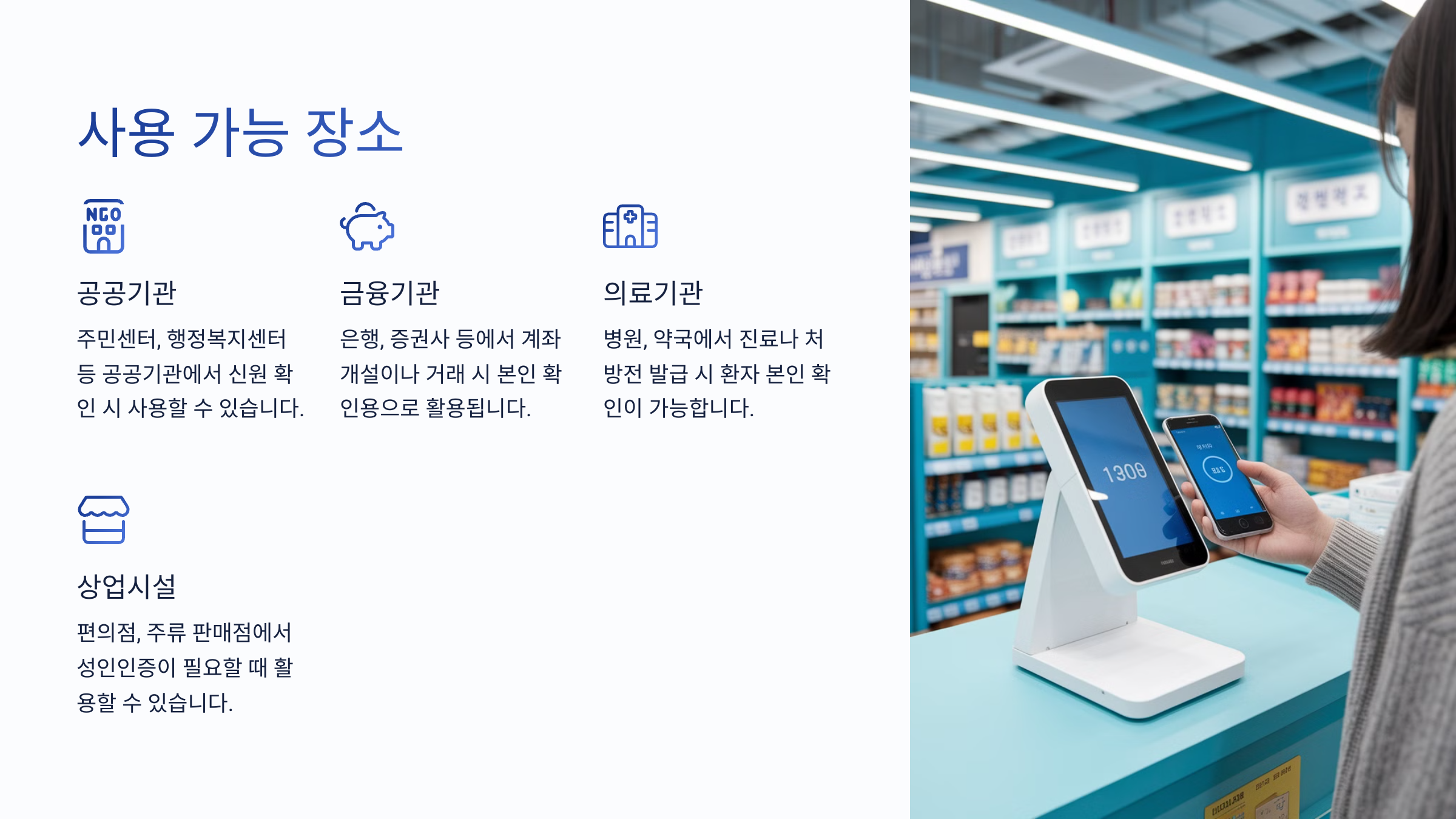 | ✅ 은행 | 계좌 개설, 금융 거래 시 신분 확인 |