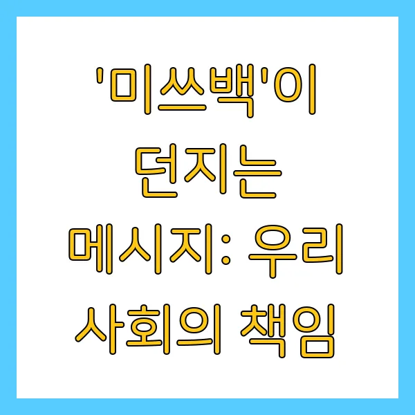 '미쓰백'은 단순한 영화를 넘어, 우리 사회의 어두운 현실을 조명하고 변화를 촉구하는 강력한 메시지 를 담고 있습니다. 백상아와 김지은, 두 여성의 연대와 투쟁은 우리에게 진정한 용기와 희망 이 무엇인지 보여줍니다. '미쓰백'은 아동 학대 문제에 대한 지속적인 관심과 사회적 책임의 중요성 을 일깨워주는, 꼭 한 번 봐야 할 영화입니다.