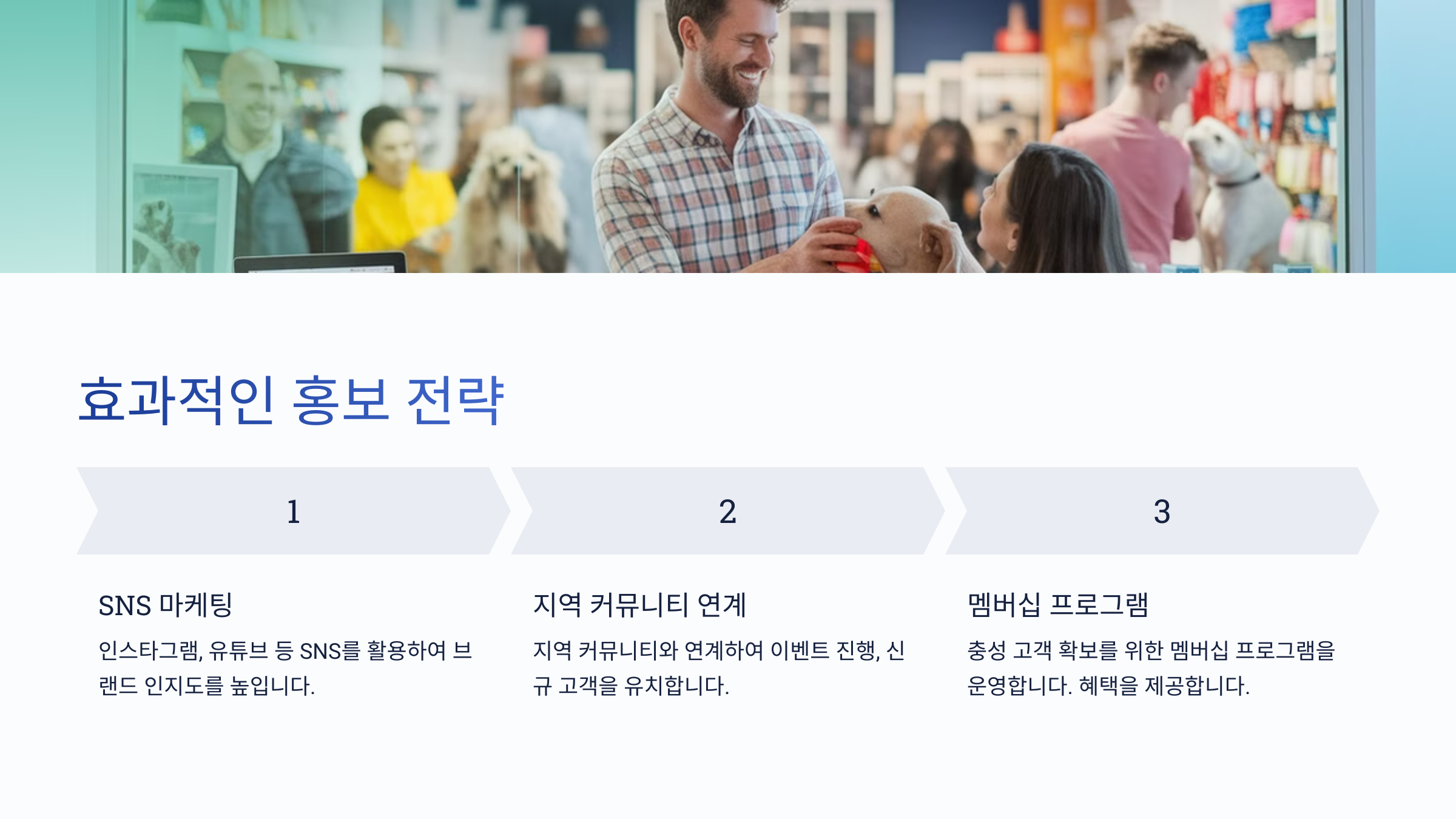 반려동물 용품점은 온라인 홍보가 정말 중요해요. 인스타그램, 블로그, 네이버 플레이스에 매장 사진과 후기, 이벤트 정보를 자주 올려서 고객들과 소통해야 해요. 그리고 지역 커뮤니티에 홍보 글을 올리는 것도 효과적이에요.