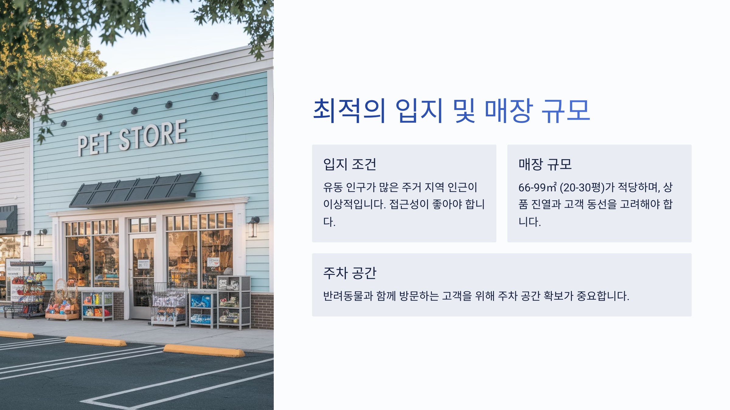 입지는 정말 중요한 요소라서, 주변 반려동물 관련 상권을 꼼꼼히 분석하고 결정하는 게 필수예요. 🏡