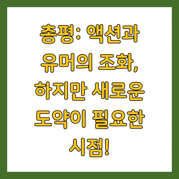 총평: 액션과 유머의 조화, 하지만 새로운 도약이 필요한 시점!
