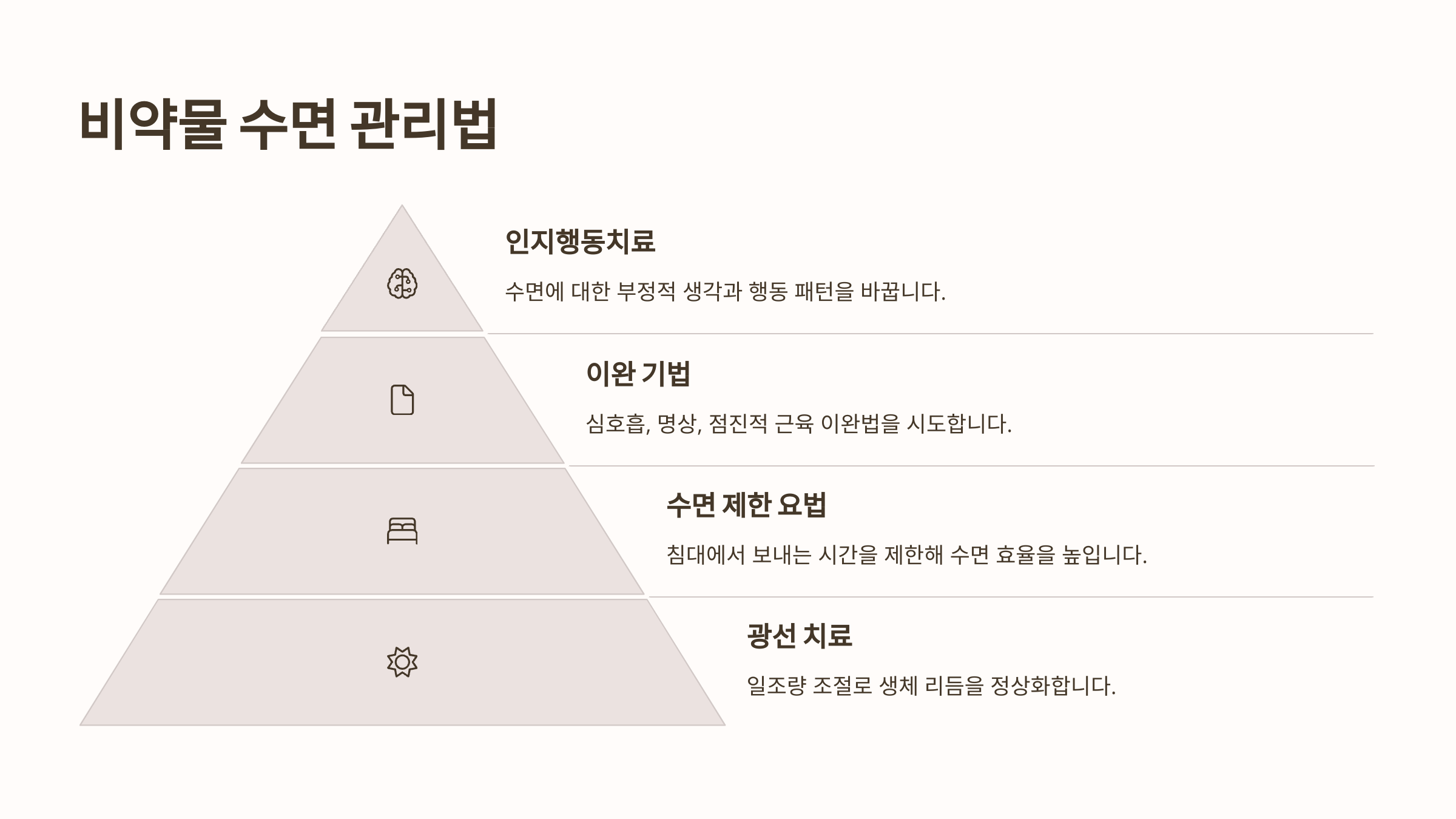 약 없이도 수면을 개선할 수 있는 방법들이 많아요. 특히 정신적인 안정과 호흡을 조절해주는 비약물 요법은 장기적으로도 매우 효과적이에요.