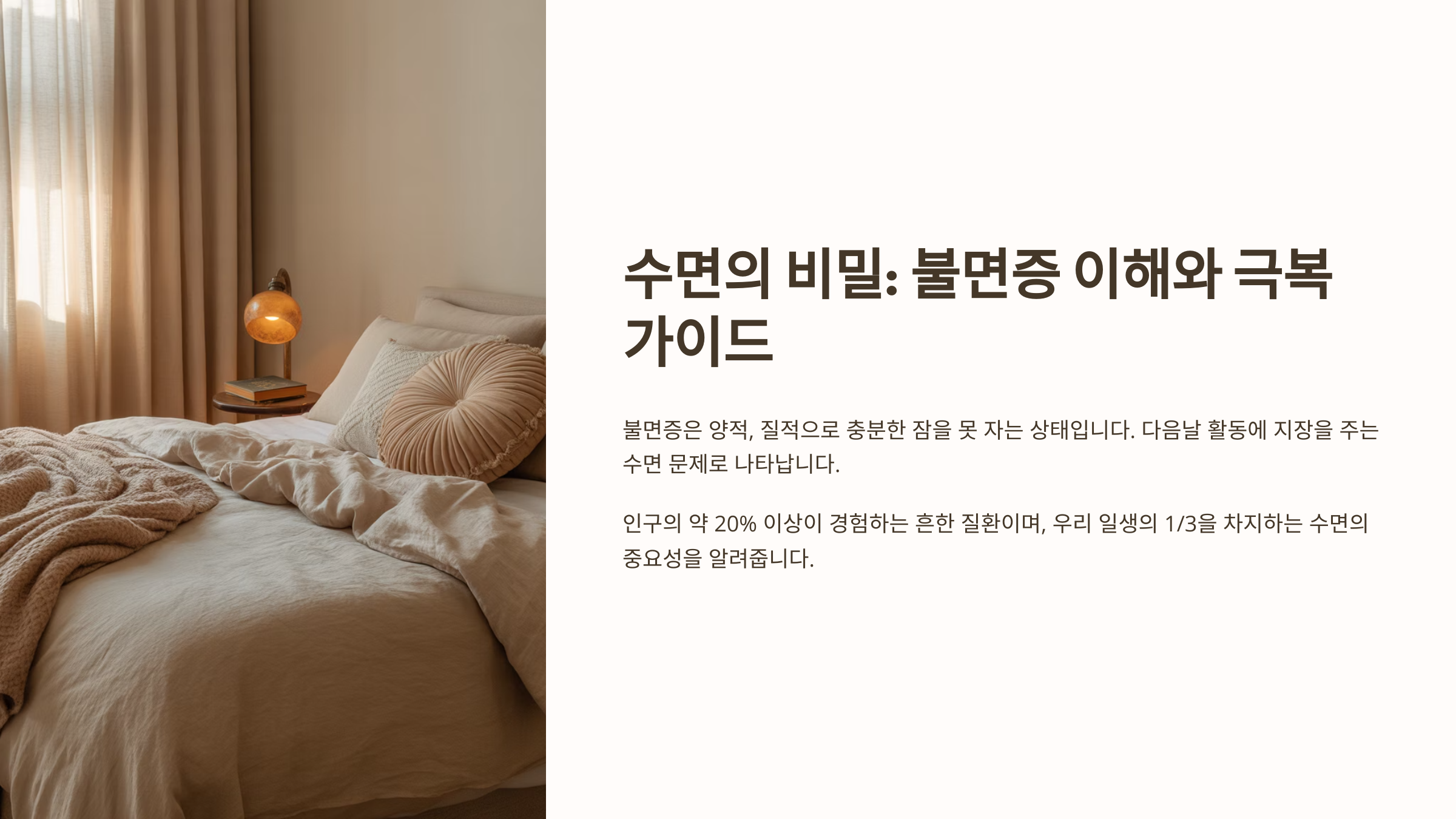 불면증은 생각보다 흔한 현대인의 질병이에요. 단순히 잠을 못 자는 게 아니라, 하루 전체의 컨디션, 집중력, 감정 조절까지 모두 영향을 주는 중요한 문제죠. 오늘은 불면증의 원인부터 극복 방법까지, 제가 직접 정리해본 실전 전략을 소개해드릴게요!