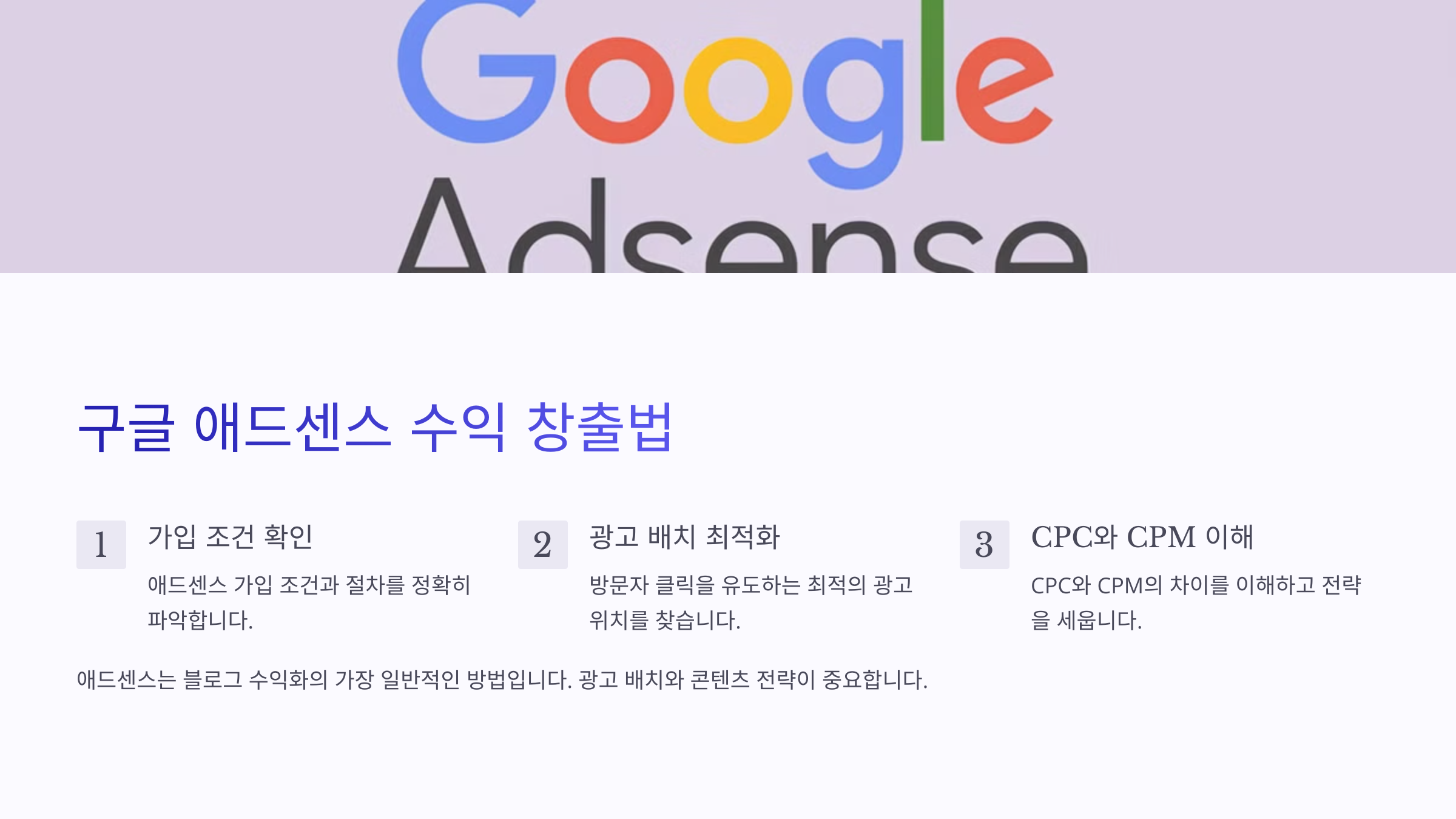 블로그 수익화 하면 가장 먼저 떠오르는 게 바로 애드센스예요. 애드센스는 구글에서 제공하는 광고 서비스인데요, 블로그에 광고를 달고 사람들이 클릭하거나 노출될 때마다 돈을 벌 수 있어요.