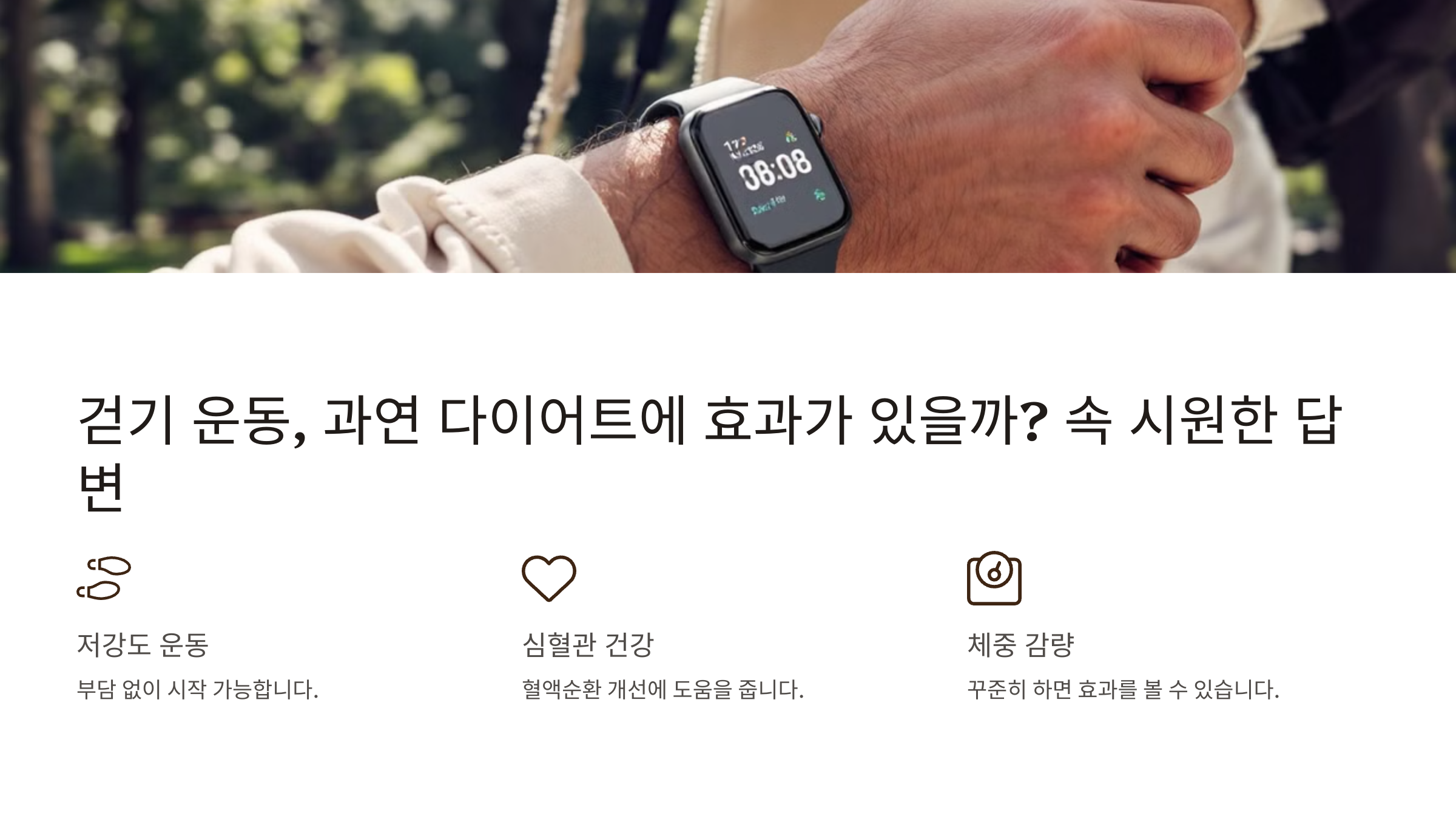 | 하루 10,000보 이상 걷기 | 일주일에 0.5~1kg 감량 가능 |