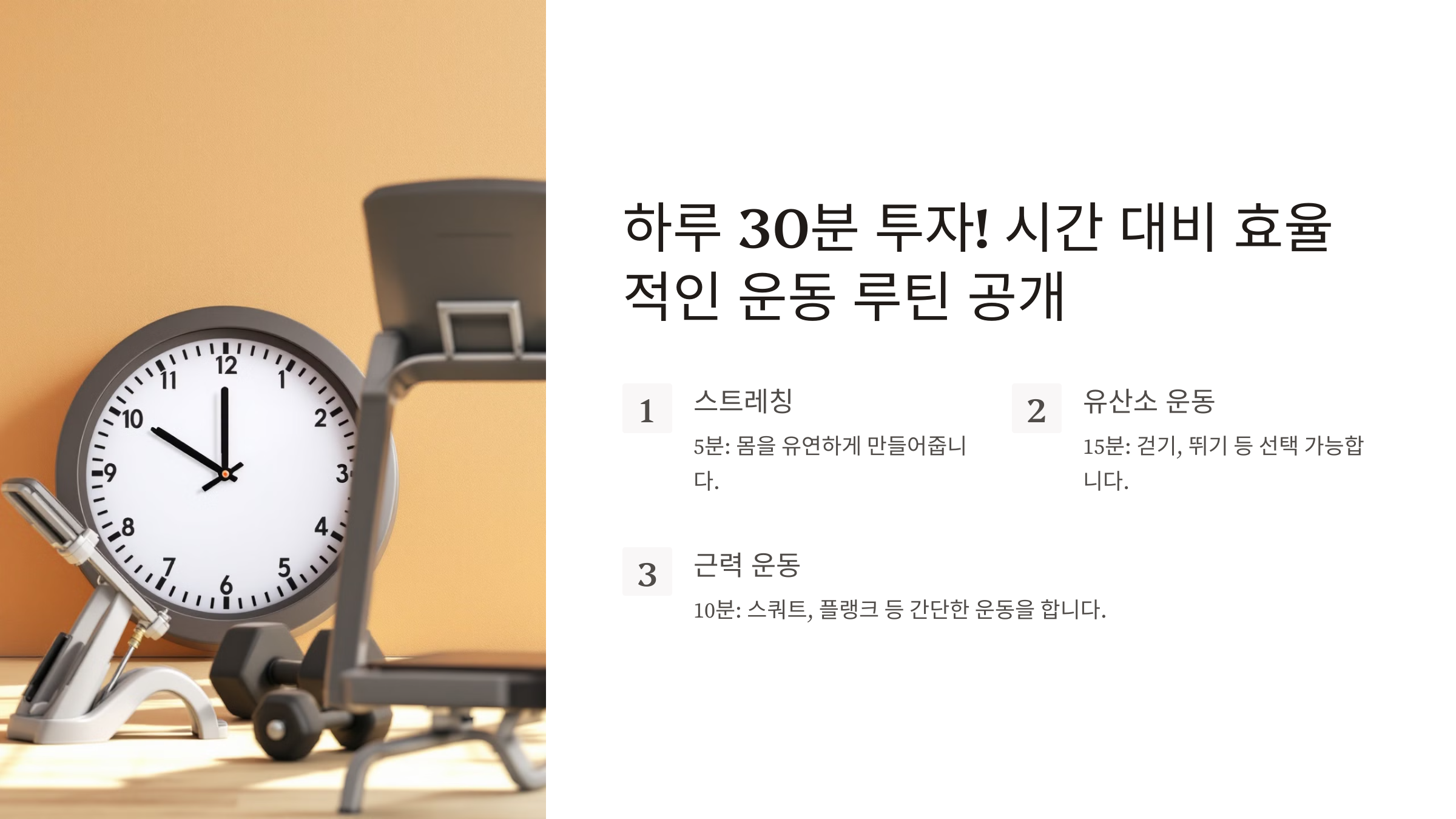 바쁜 일상 속에서 긴 시간 운동하는 게 쉽지 않죠? 하지만 하루 30분만 투자해도 충분히 살을 뺄 수 있어요! 중요한 것은