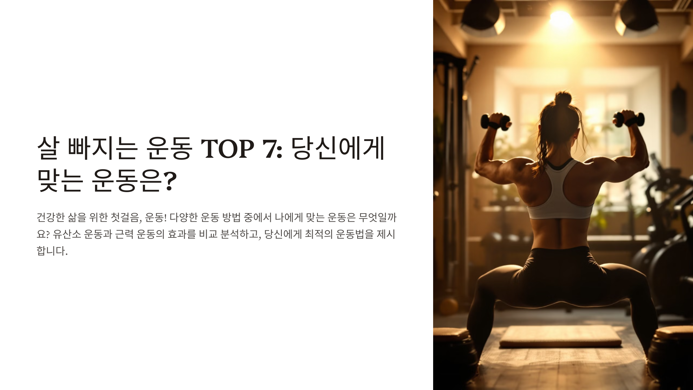 특히 유산소운동과 근력운동 중 어떤 것이 더 효과적인지, 짧은 시간 안에 최대한의 효과를 내는 방법이 무엇인지 고민하는 분들도 많을 거예요. 이번 글에서는 살이 빠지는 데 가장 효과적인 운동 7가지와 다이어트에 도움이 되는 다양한 운동법을 소개할게요!
