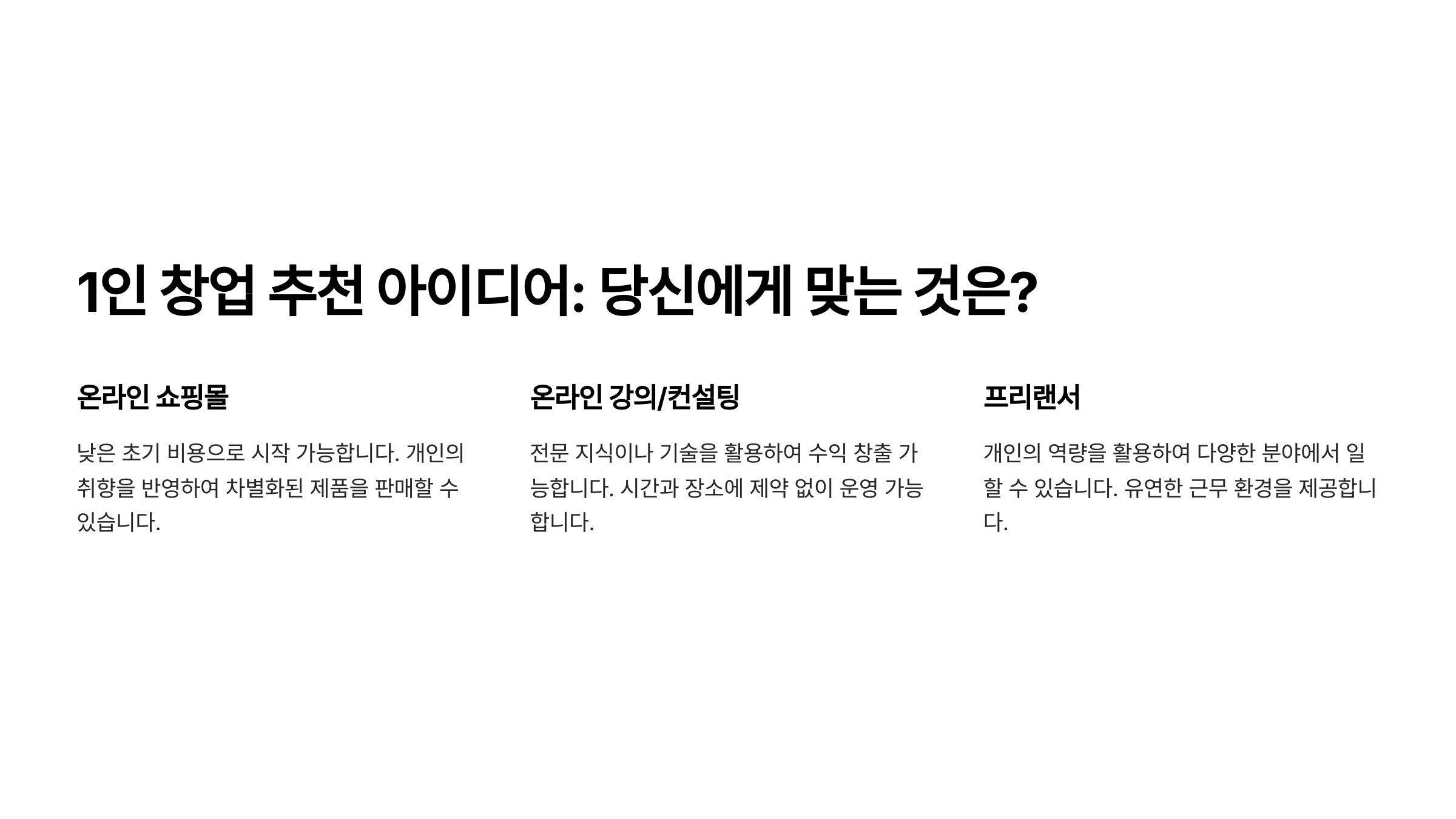 📌 혼자서 할 수 있는 창업 아이템 비교
