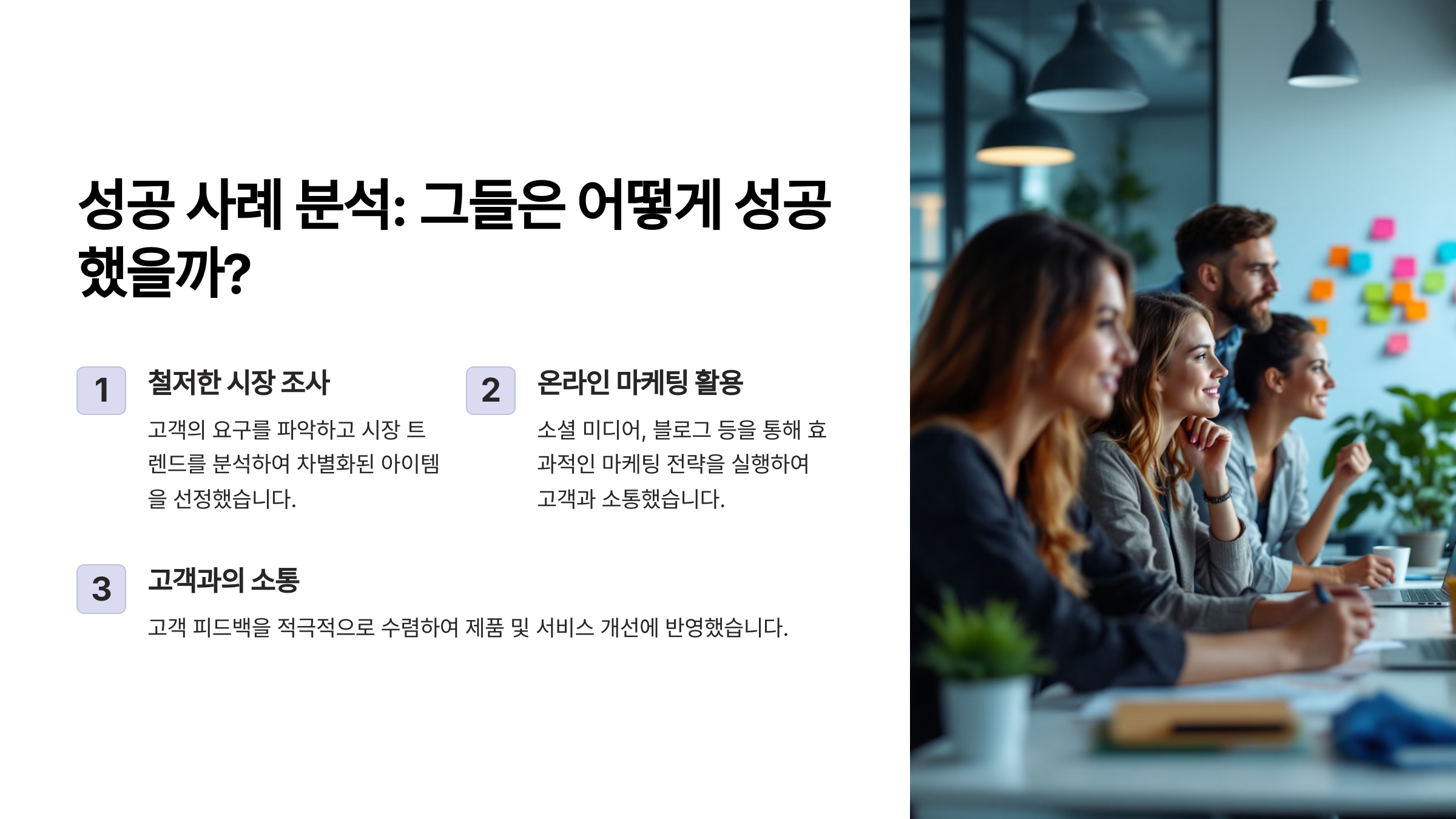 💡 만약 창업을 고민하고 있다면, 위의 성공 사례에서 배운 전략을 적용해보세요! 누구나 가능성이 열려 있는 시장이에요.