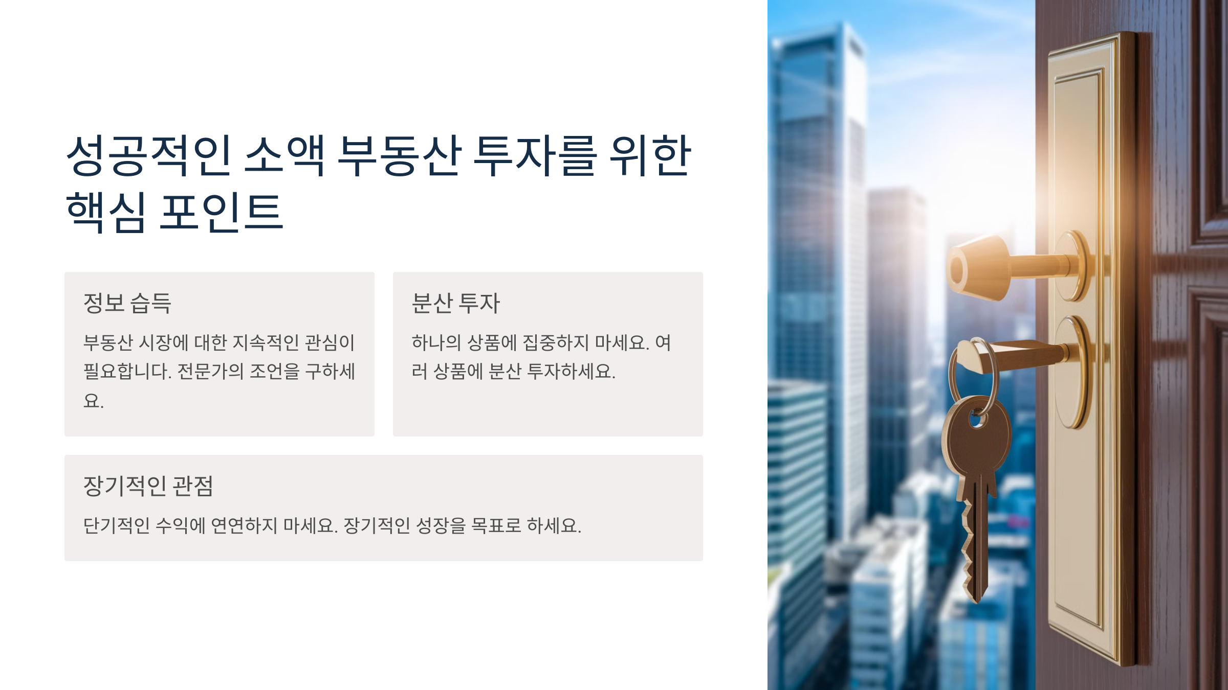 📌 부동산 투자는 장기적인 시각에서 접근해야 해요. 소액으로 안전하게 시작하면서 경험을 쌓는 것이 가장 중요한 전략!