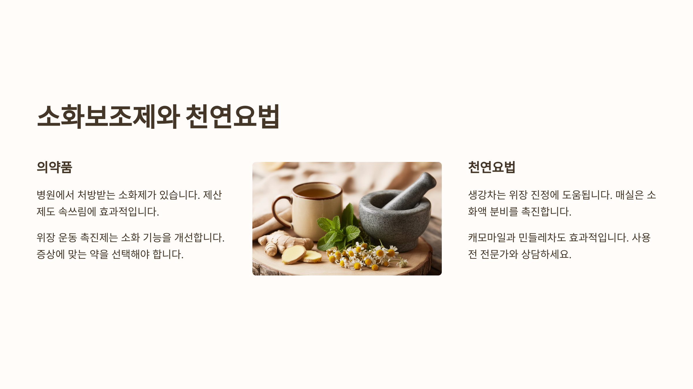 이 외에도 유산균, 베타인HCL 같은 성분도 소화에 도움을 줄 수 있어요. 본인 상태에 맞는 보조제를 선택해야 해요.