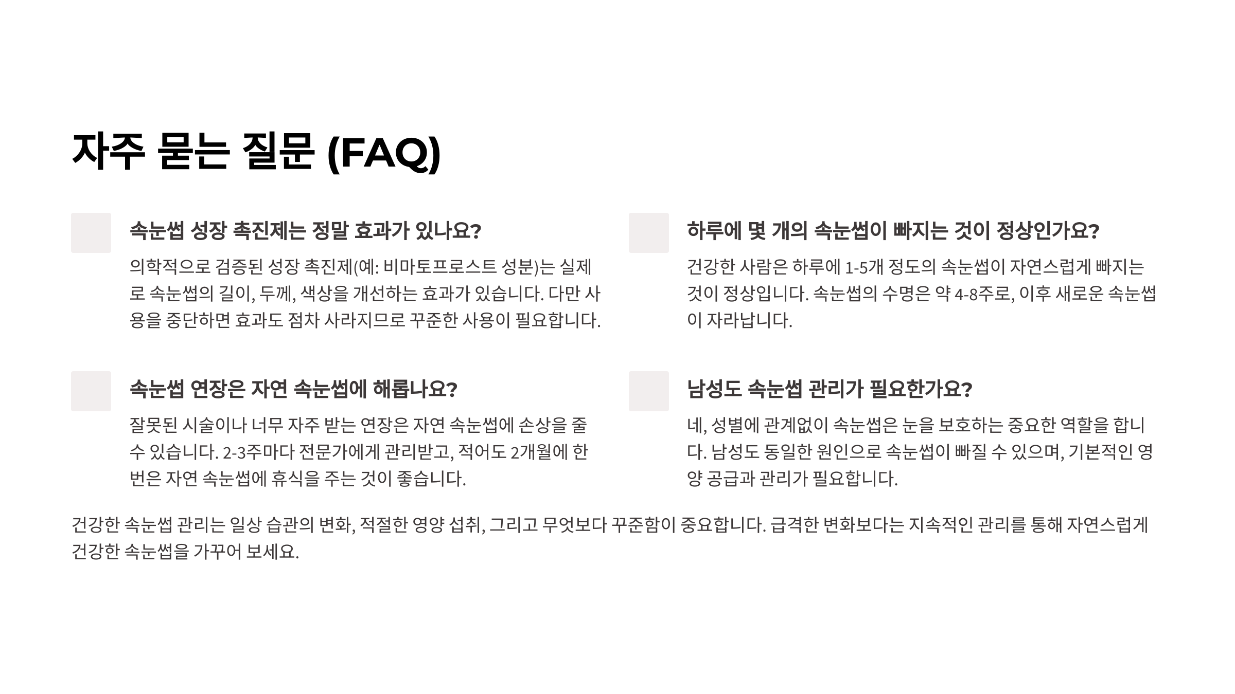 속눈썹 탈락의 원인을 정확히 파악하면, 그에 맞는 해결책을 찾는 데도 훨씬 수월해져요. 특히 반복적으로 빠지는 경우엔 단순한 뷰티 문제가 아닌 건강 신호일 수 있다는 점을 꼭 기억해 두세요.