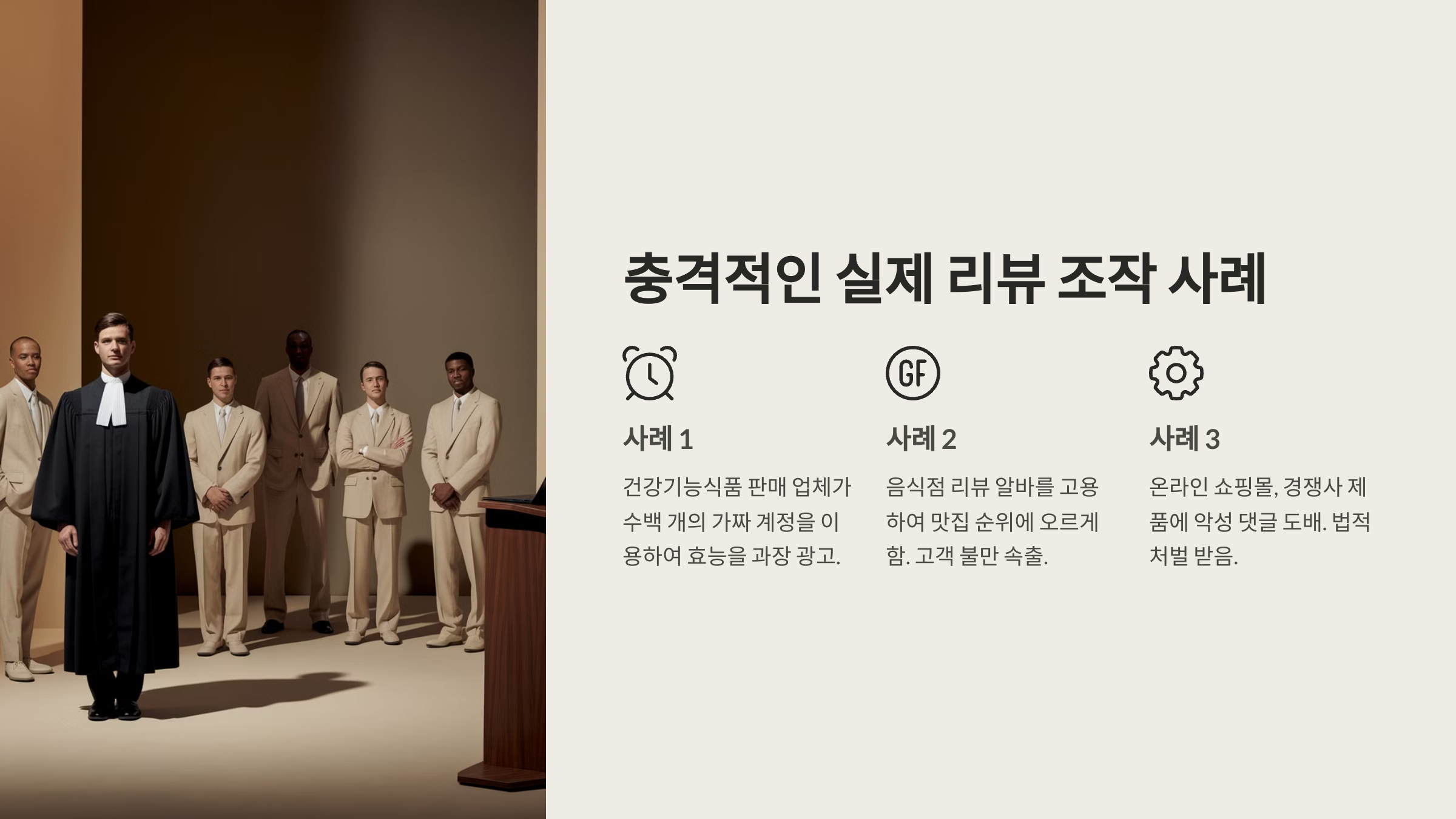 ⚖️ 리뷰 조작은 단순한 홍보 수단이 아니라 소비자를 기만하는 불법 행위로 간주돼요. 국내외에서 허위 리뷰에 대한 규제가 점점 강화되고 있어요.