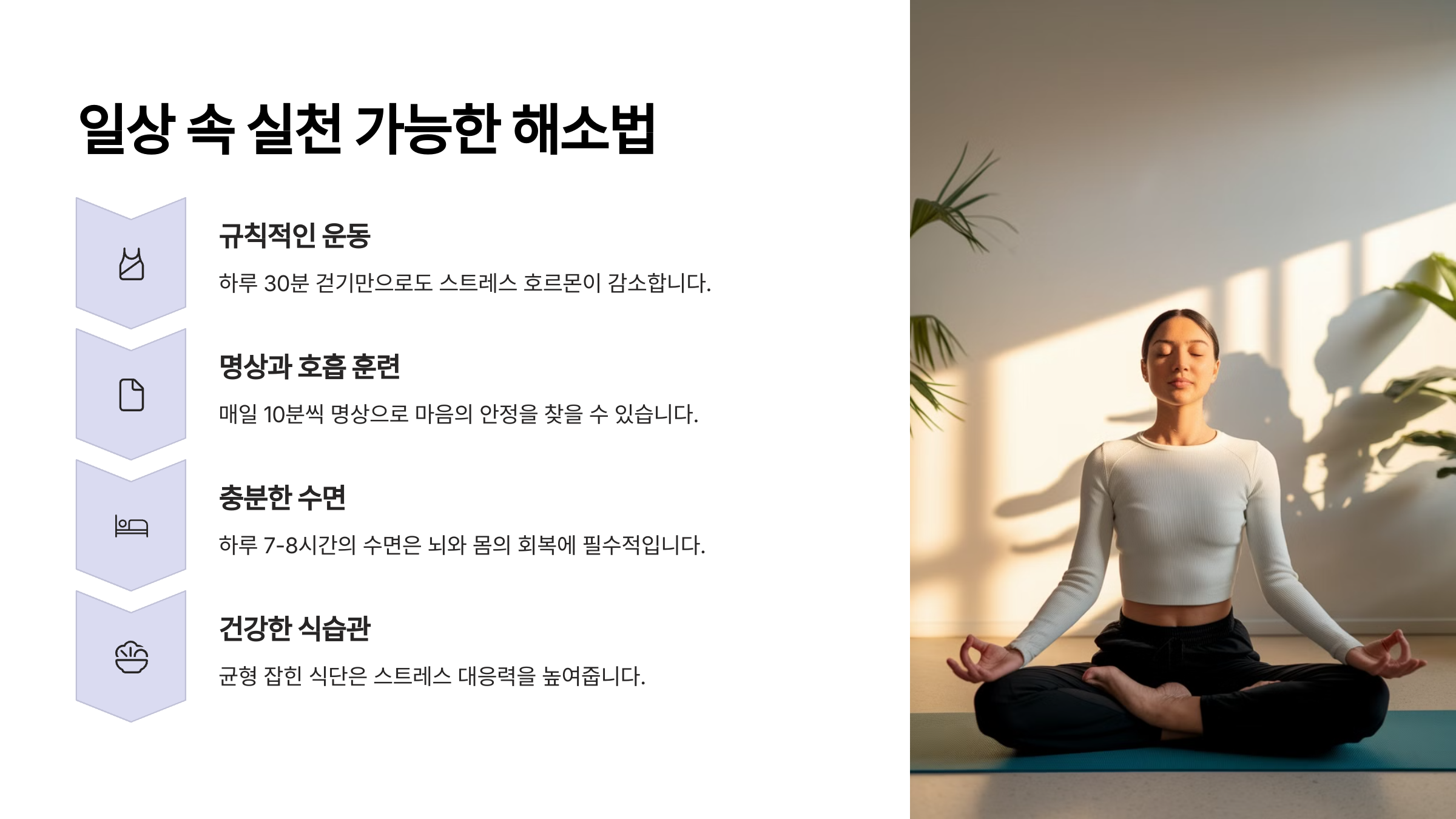 이번 글에서는 일상 속에서 자연스럽게 실천할 수 있는 스트레스 해소 루틴들을 소개할게요. 이 글이 당신에게 하루 10분의 쉼표가 되길 바라요 🍃