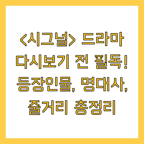 2016년 tvN에서 방영된 드라마 <시그널>은 탄탄한 스토리와 배우들의 명연기로 엄청난 인기를 끌었죠! 과거와 현재의 형사가 오래된 무전기로 미제 사건들을 해결해나가는 흥미진진한 스토리! 아직 시그널을 안 보셨다면?! 혹은 다시 한번 정주행을 계획 중이시라면?! 이 포스팅을 절대 놓치지 마세요! 등장인물, 줄거리, 명대사, 그리고 시청 꿀팁까지 모두 담았습니다! 자, 그럼 <시그널>의 세계로 함께 떠나볼까요?