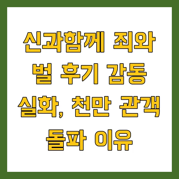 2017년 겨울을 뜨겁게 달궜던 영화 '신과 함께-죄와 벌'! 주호민 작가의 웹툰을 원작으로 한 이 영화는 1441만 관객을 돌파하며 한국 영화 역사에 한 획을 그었습니다. VFX 기술의 혁신, 탄탄한 스토리, 배우들의 열연까지, 과연 천만 관객을 사로잡은 비결은 무엇이었을까요? 지금 바로 흥행 신화와 감동 실화를 파헤쳐 보겠습니다. 궁금하시죠?!