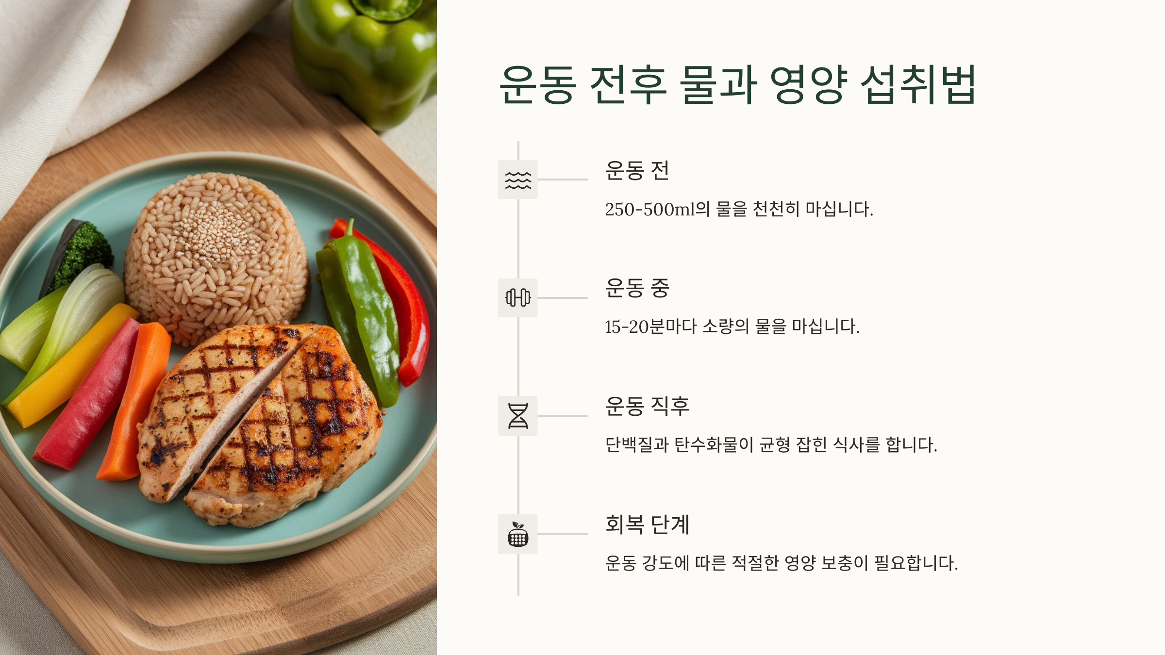 운동 후에는 30분 이내로 단백질과 탄수화물이 포함된 식사를 해주는 게 좋아요. 삶은 달걀, 닭가슴살, 현미밥 등이 대표적인 식단이에요. 공복 운동 후 회복도 매우 중요하답니다!