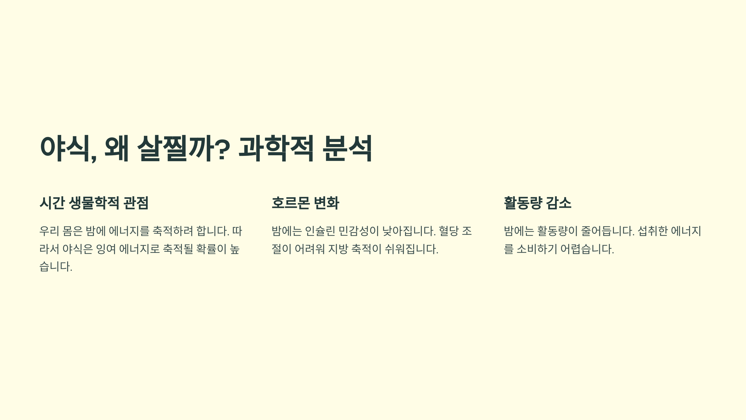 즉, 야식은 단순히 '한 끼 더 먹는 것'이 아니라, 몸의 대사와 호르몬 균형을 무너뜨려 지속적인 체중 증가를 초래할 수 있어요. 하지만 그렇다고 해서 야식을 완전히 끊어야 하는 건 아니에요. 적절한 대안을 찾으면 충분히 건강하게 관리할 수 있답니다! 🥗