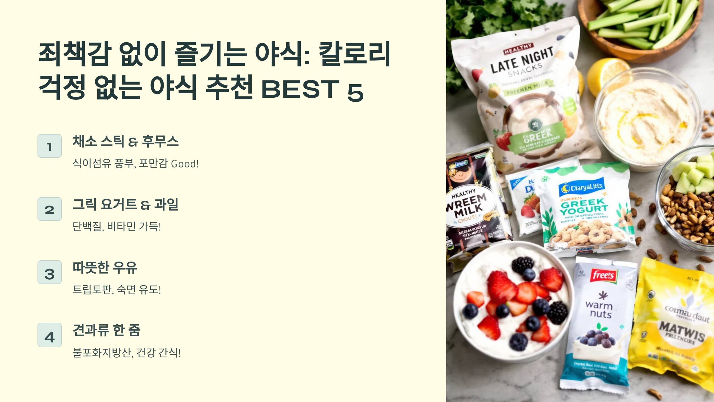 야식을 먹고 싶을 때, 이렇게 건강한 선택을 하면 체중 증가를 피하면서도 허기를 해결할 수 있어요!