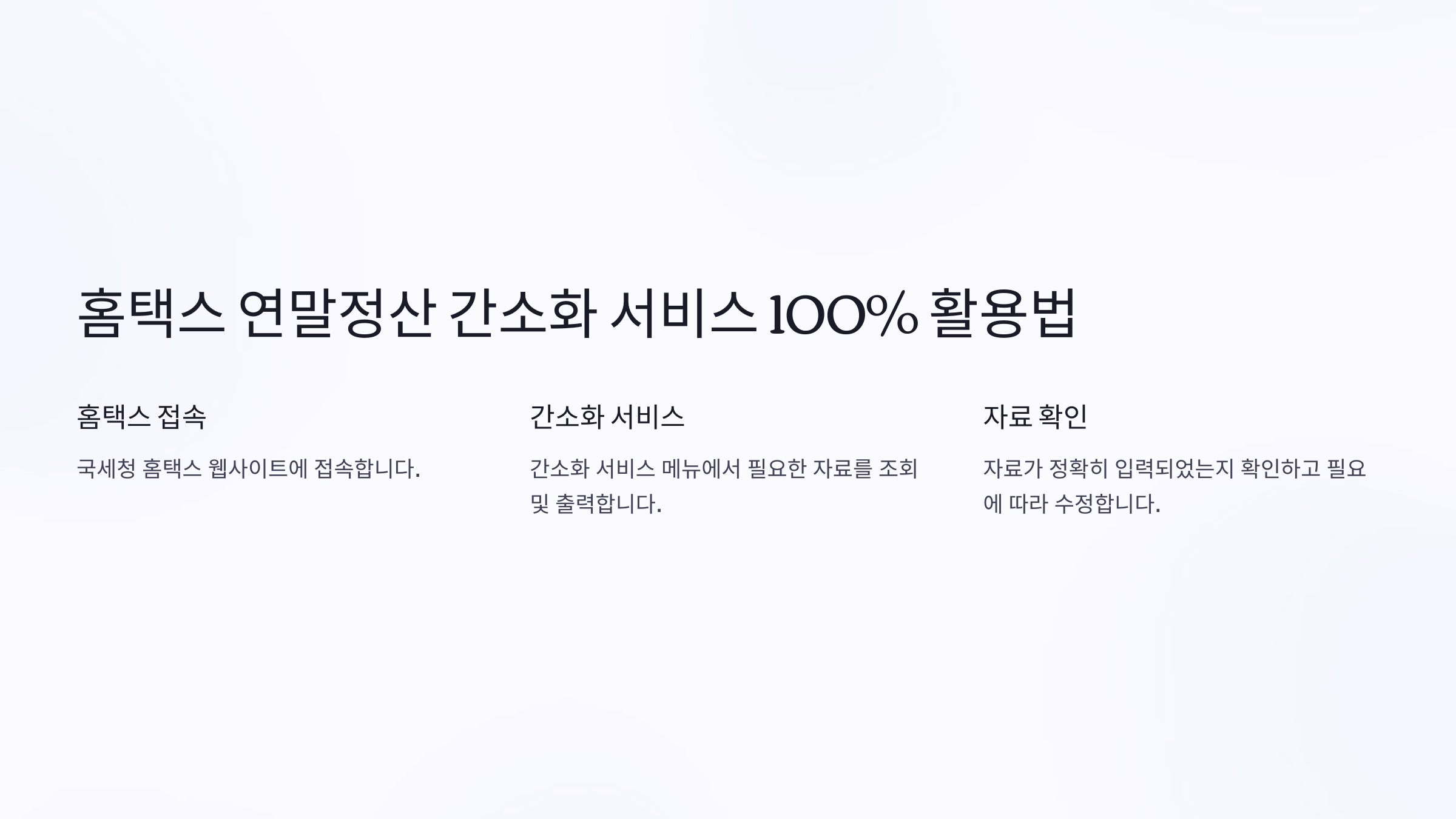 국세청 홈택스에서는 연말정산 간소화 서비스를 제공해요. 이를 제대로 활용하면 대부분의 자료를 간편하게 확인할 수 있답니다.