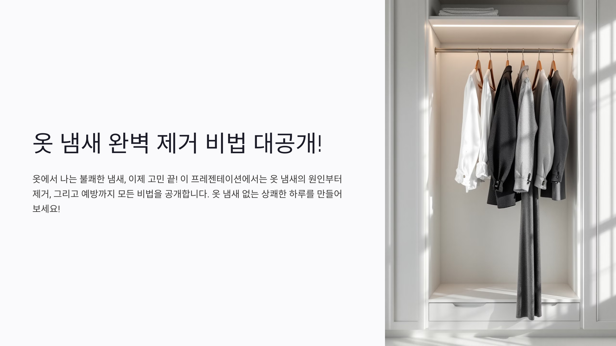 이제 옷에서 냄새가 나는 원인과 제거 방법, 유지 비법까지 모두 알게 되었어요! 깨끗하고 향기로운 옷으로 기분 좋은 하루 보내세요!
